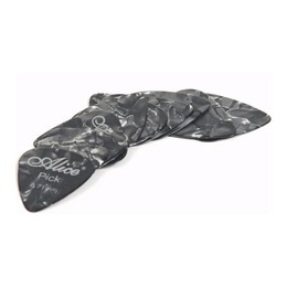 Alice guitar picks (plectrums) are made from a high quality celluloid material and have great flex and durability. Celluloid picks are also easy to grip even when you hands are sweating up!