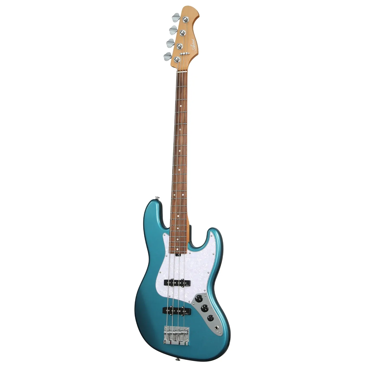 The Artist AJBDLX Deluxe in Metallic Blue is a vintage-inspired jazz-style electric bass with a roasted poplar body and rosewood fretboard delivering classic punchy tone. Balanced Alnico V pickups and simple controls make it versatile for various styles.