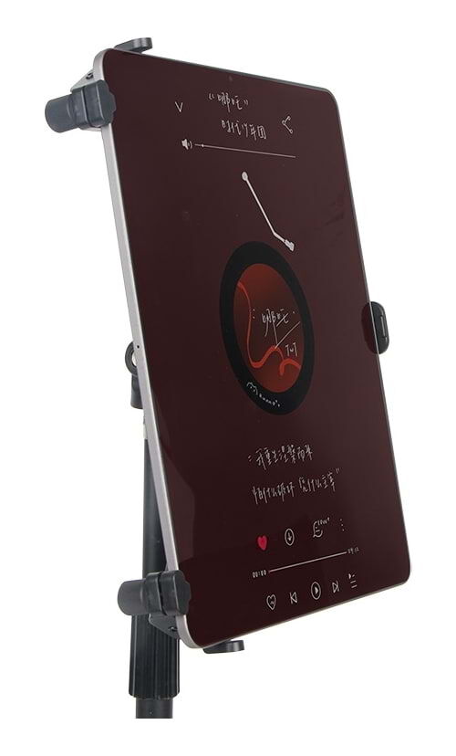 The Alctron TPH200 is a universal tablet tripod holder in black that securely grips your tablet, rotates 90°, and mounts onto any 5/8″ thread stand for stable vertical or horizontal viewing. Three support points distribute pressure evenly. Antiskid design