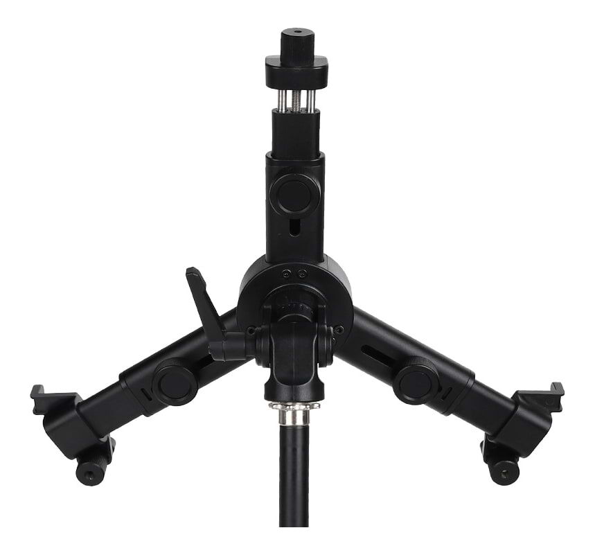 The Alctron TPH200 is a sturdy and adjustable tripod holder for tablets, built with a mix of aluminium alloy and plastic for durability. It features three support points to distribute pressure evenly, giving your tablet extra stability and reducing wobble. Its arms are extendable to accommodate various tablet sizes, and the arc-shaped edges of the holder cradle the tablet without blocking the screen. A snap-lock mechanism allows quick and secure attachment or removal, while the 90° rotation function lets you switch easily between portrait and landscape orientation. It mounts onto a standard 5/8″ thread connector, making it compatible with most mic stands and tripod setups.
