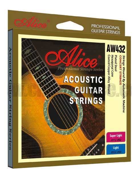 One set of Alice AW432-L Light Steel Acoustic Guitar Strings, .012/.053 Alice strings are made exclusively from material imported from the USA, Germany, France and Japan. Using advanced manufacturing technologies, Alice strings are renowned for preci