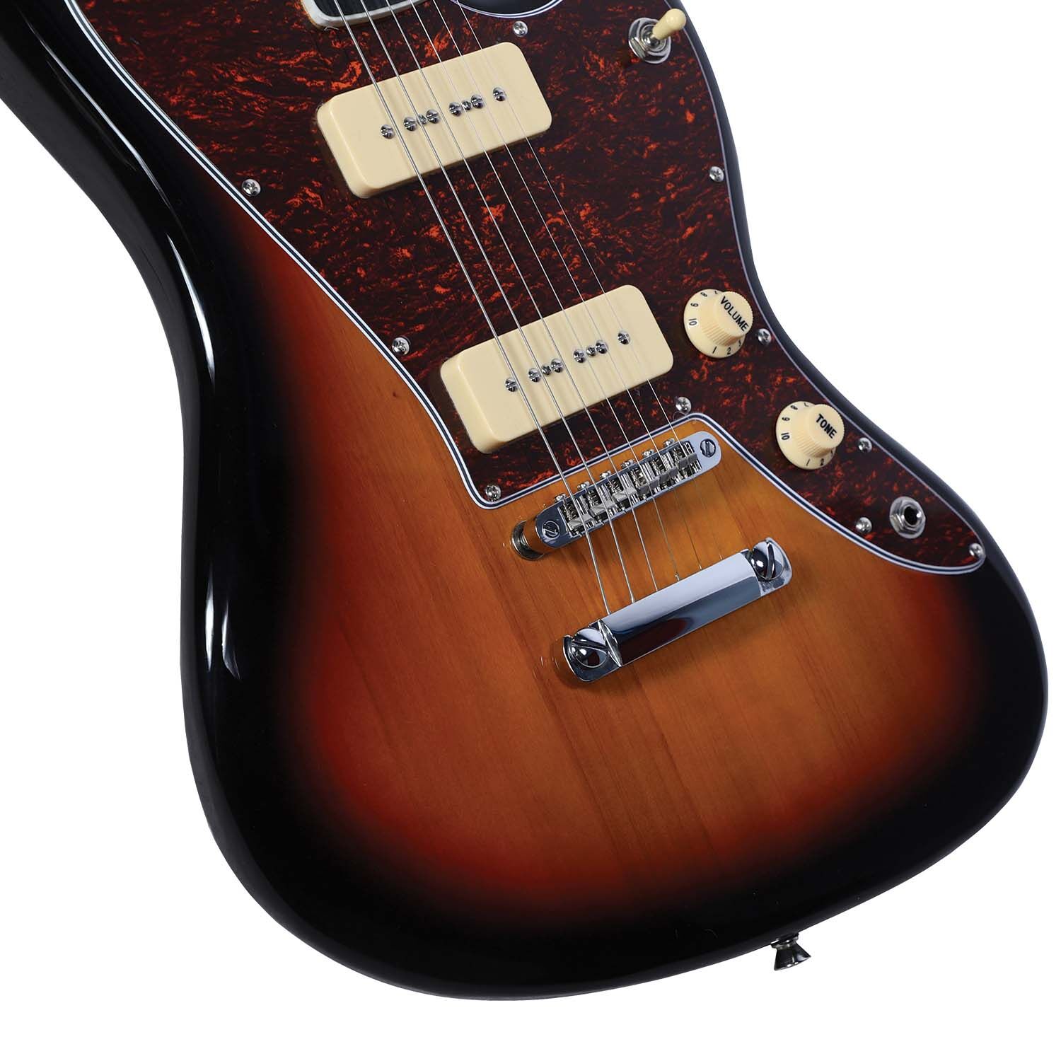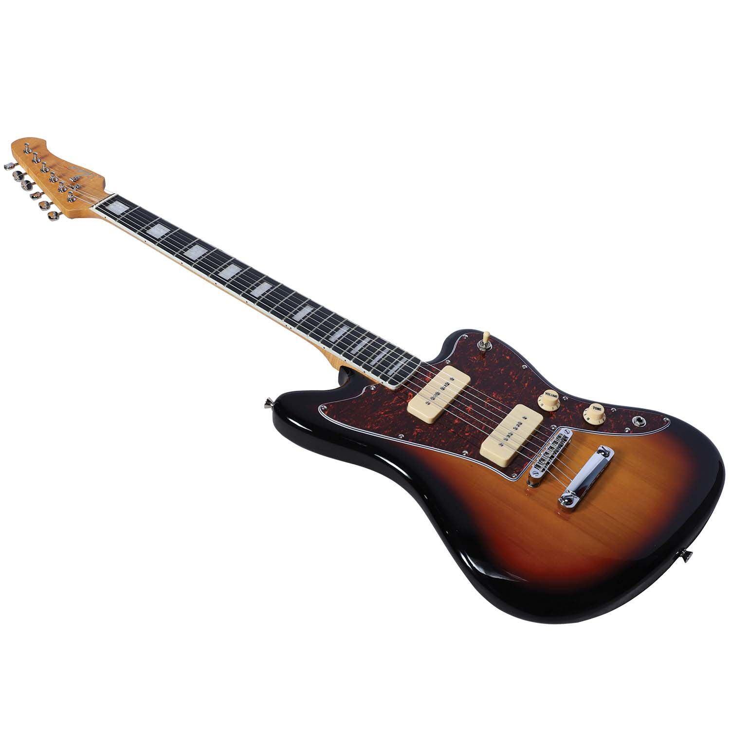 From surf to punk and indie rock, the Artist Grungemaster was purposely designed to be a great 1st guitar for the riff conscious guitarist. Poplar body, Canadian Maple Neck, Eco- Rosewood fretboard, vintage sunburst finish, two P90 styled single coils.
