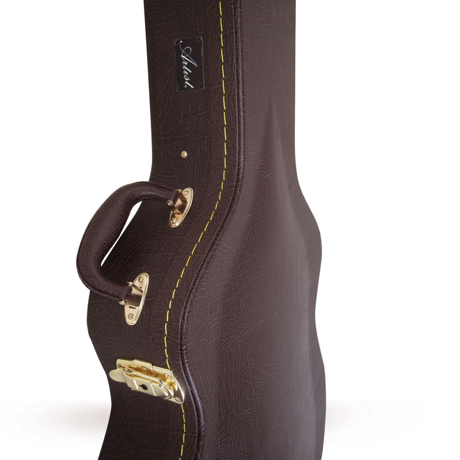 The Artist JC450 Brown Arch Top Hard Guitar Case fits 335 Style guitars such as Gibson ES335, 345, 355 or similar, and some Epiphone equivalents. This Hard Case has sturdy wooden construction with a lockable Latch (the key is inside the case).