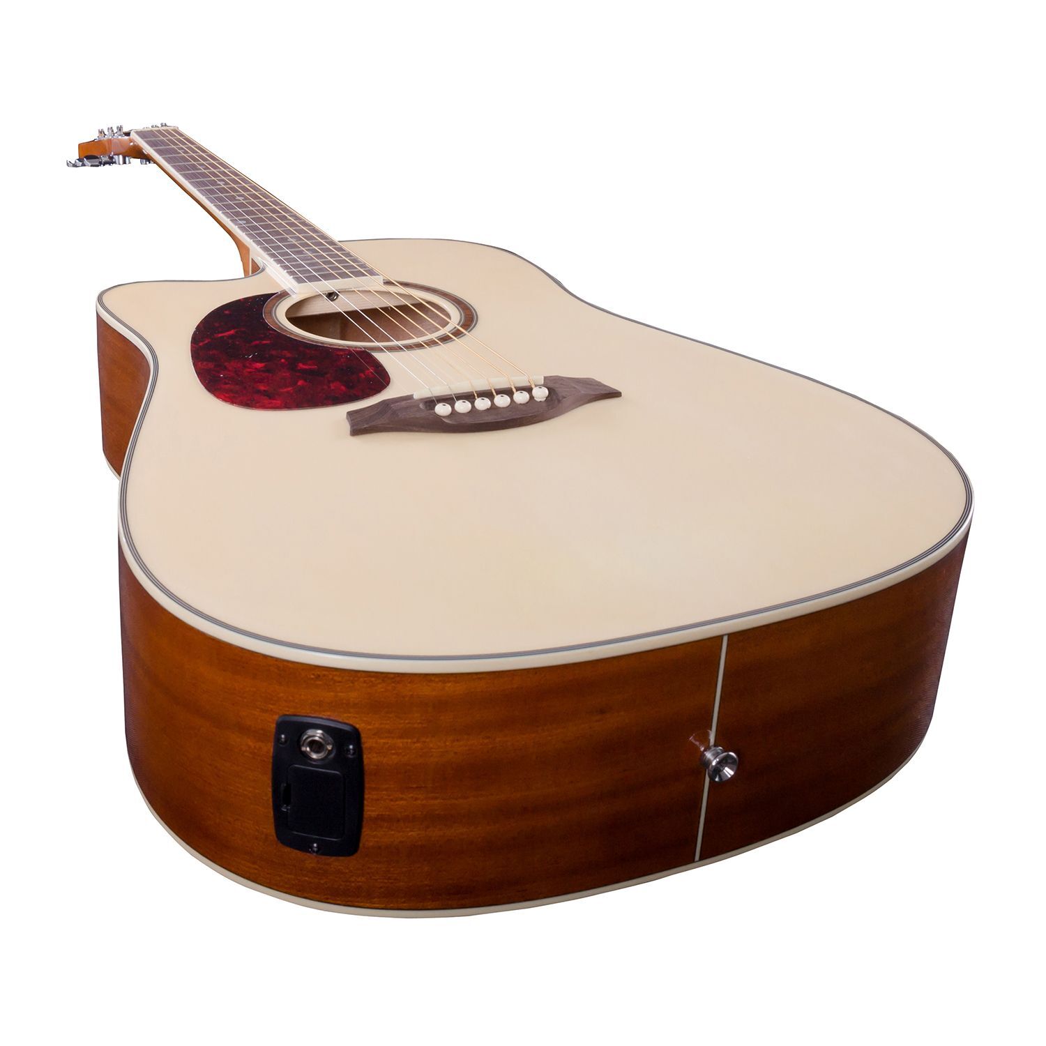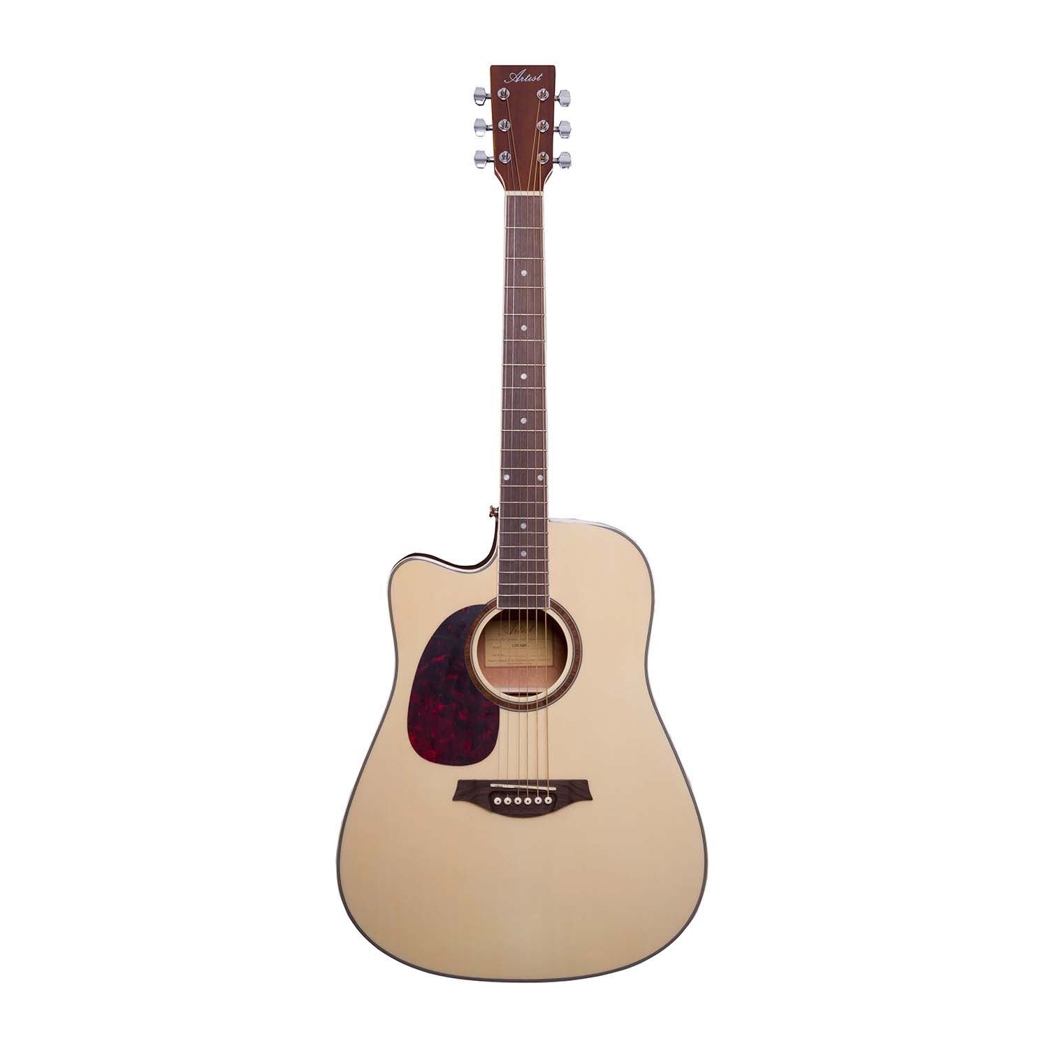 The Artist Left Handed Lesson Pack (LSP) Acoustic Guitar Pack is designed with the beginner guitarist in mind. This model comes with the added bonus of a Cutaway (to reach the higher frets) and a pickup with an equaliser. This is so that you can plug directly into an amp, PA system or recording system.