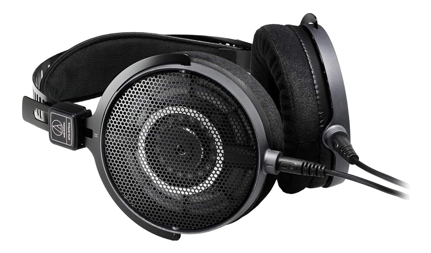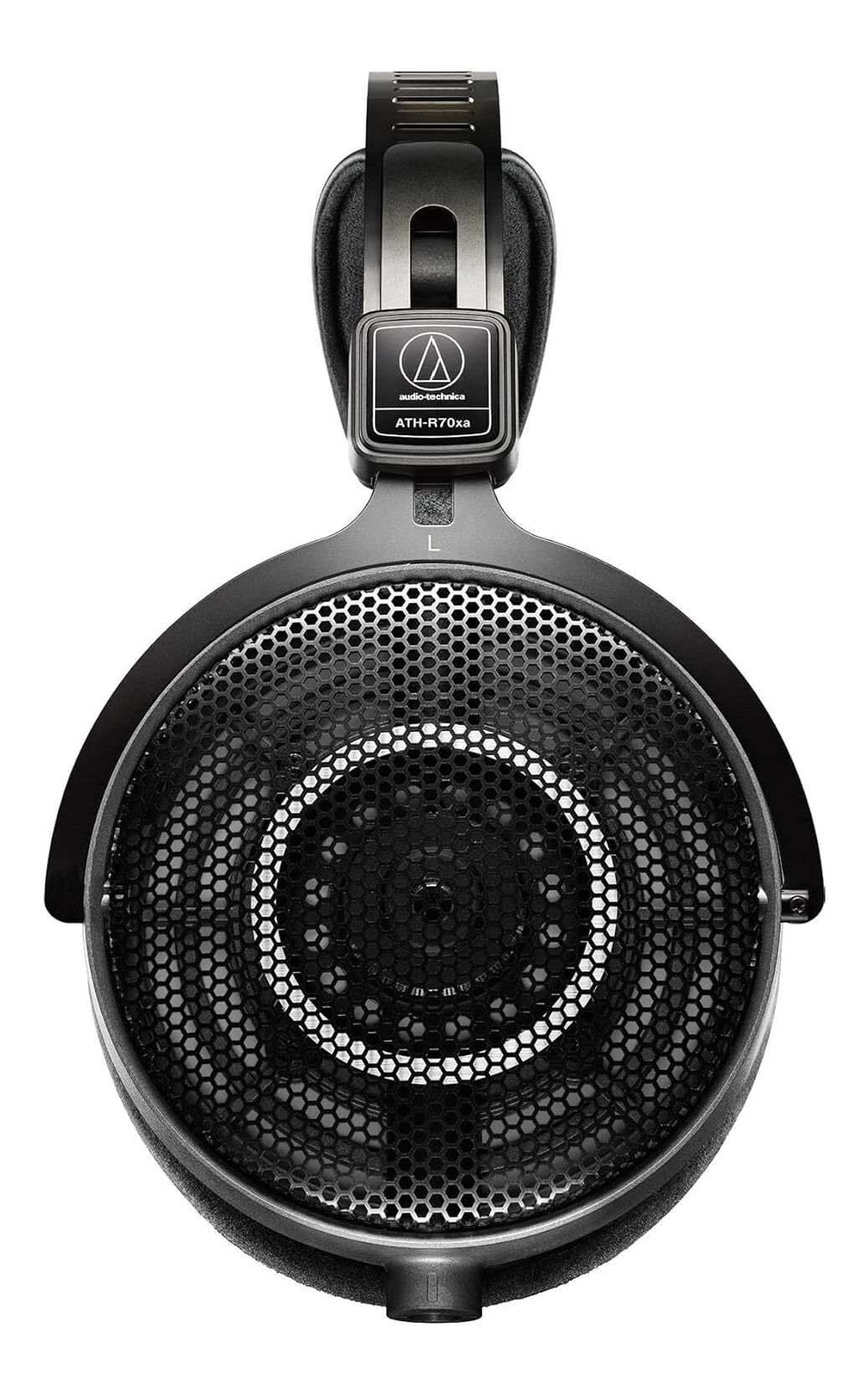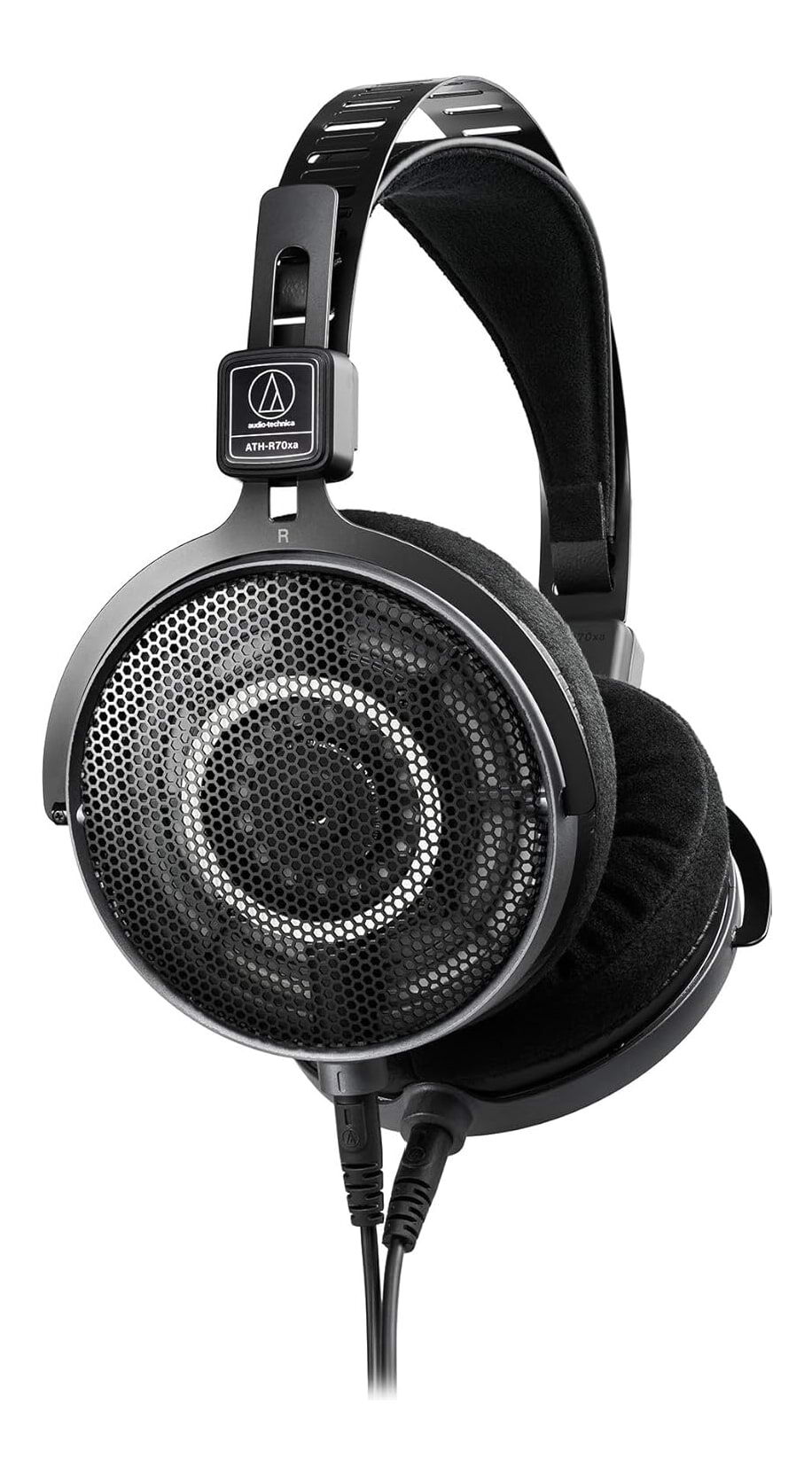The Audio-Technica ATH-R70xa is a pro-grade open-back reference headphone with 45mm drivers, 5–40kHz range, ultra-light, carbon-resin construction, floating headband, L/R-agnostic detachable cable, and wide soundstage - perfect for mixing and mastering.