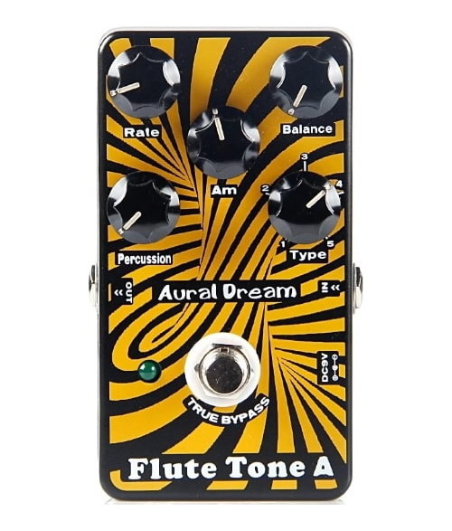 Aural Dream's Flute Tone-A Synthesizer Guitar Effect Pedal features five varying flute tone modes, utilising tone synthesis algorithms. A great pedal for producing unique airy tones. Features True Bypass, low noise and low-power circuits, solid build.