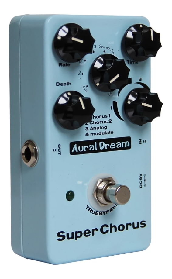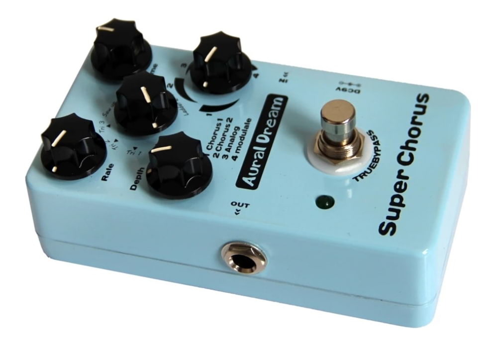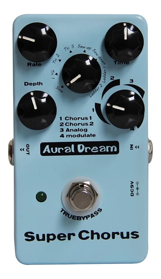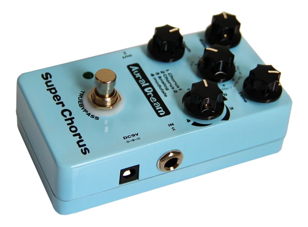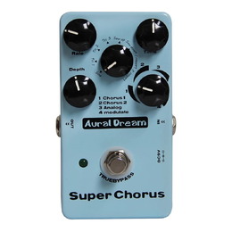 The Aural Dream Super Chorus Guitar Effect Pedal produces a variety of unique chorus effects, with its 4 chorus modes and 8 modulation waveforms, making up 32 unique chorus effects. True bypass, solid aluminium alloy construction.