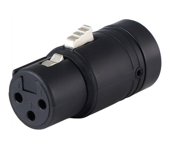 The Cable Techniques CT-BX3F-K is a low profile, right angle female XLR 3-pin connector, allowing you to have a cable exiting 120 degrees at around 3 o'clock or 9 o'clock. Matte black shell, gold pins. Black cap colour. Accepts cable diameters up to 6mm.