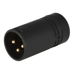 The Cable Techniques CT-BX3ML-K is a low-profile right angle XLR male 3-pin connector in Black, designed to deliver high-quality audio transmission. Large cap accepts cables from 3.8mm to 6mm. Sturdy and durable, matte black shell, equipped with gold pins