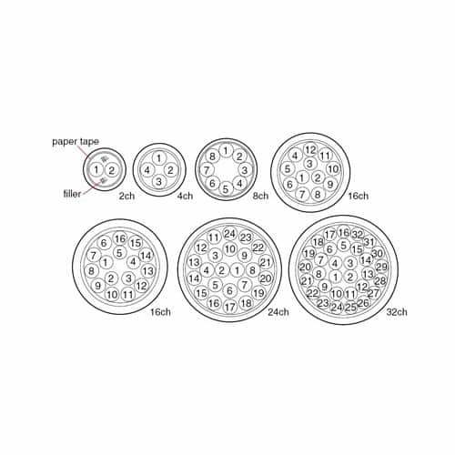 Each individually isolated channel consists of 2 twisted conductors under an easy-to-strip PVC jacket extruded over a foil shield and drain wire. The color striped PVC channel jacket alleviates the need to use costly shrink tubing. Surprisingly flexible, this multichannel cable is perfect for control room layout and interfacing between equipment racks, audio patchbays, mixers and tape decks.