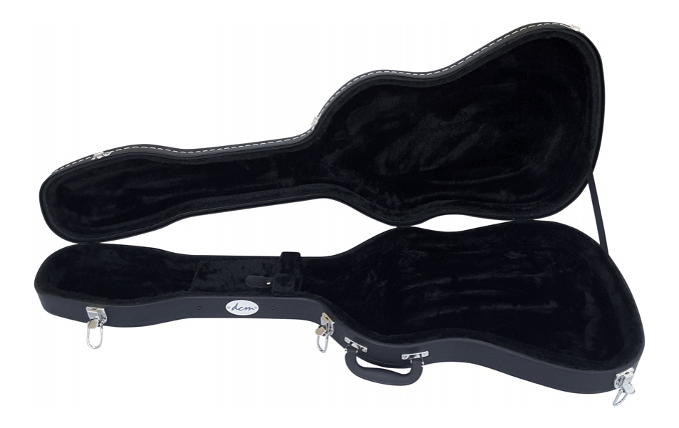 This DCM WECS1 wooden shaped guitar case fits most strat-style guitars available and is a great way to provide sturdy protection against impacts and weather exposure. Featuring strong latches, chrome hardware, plush black lining, and solid construction.