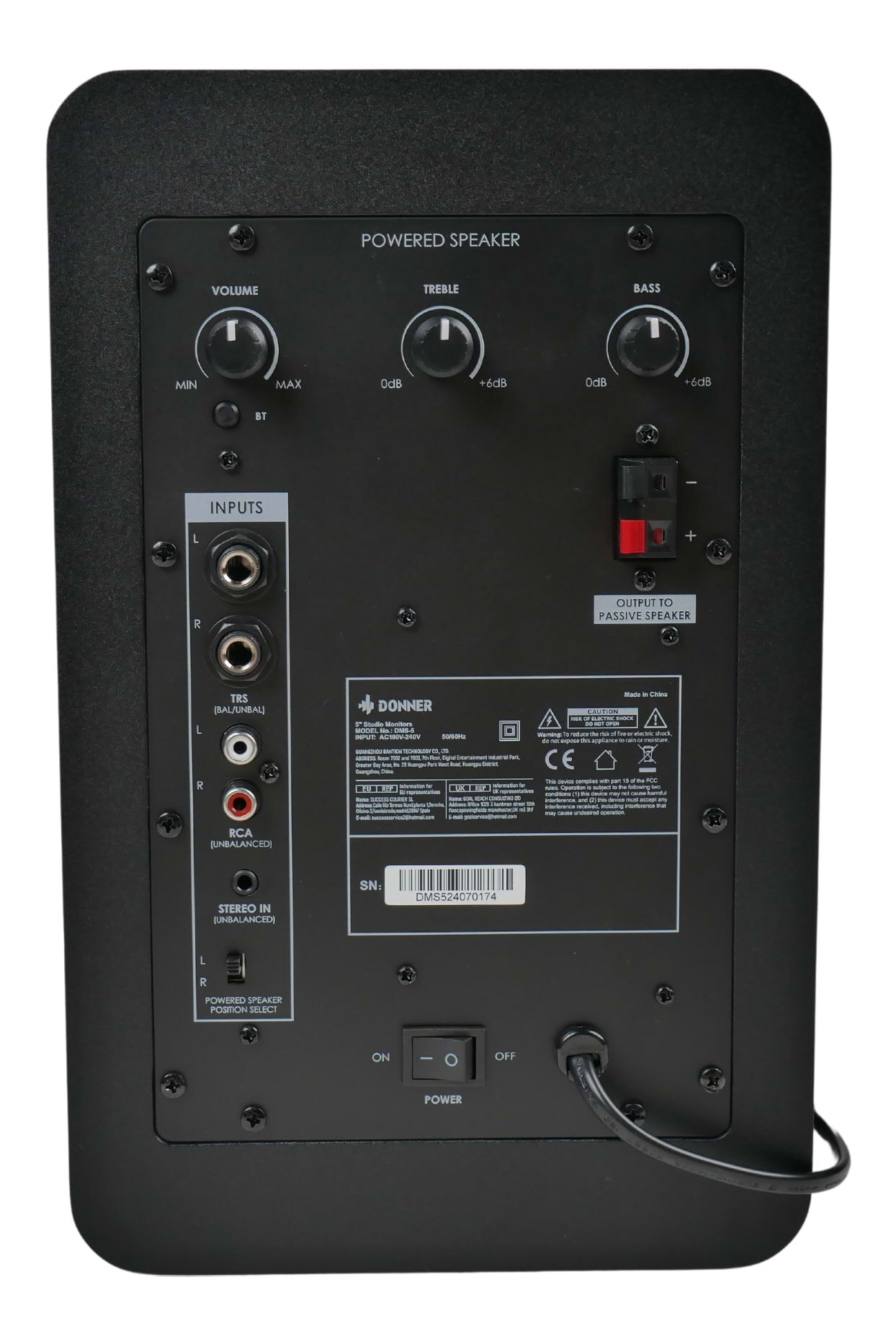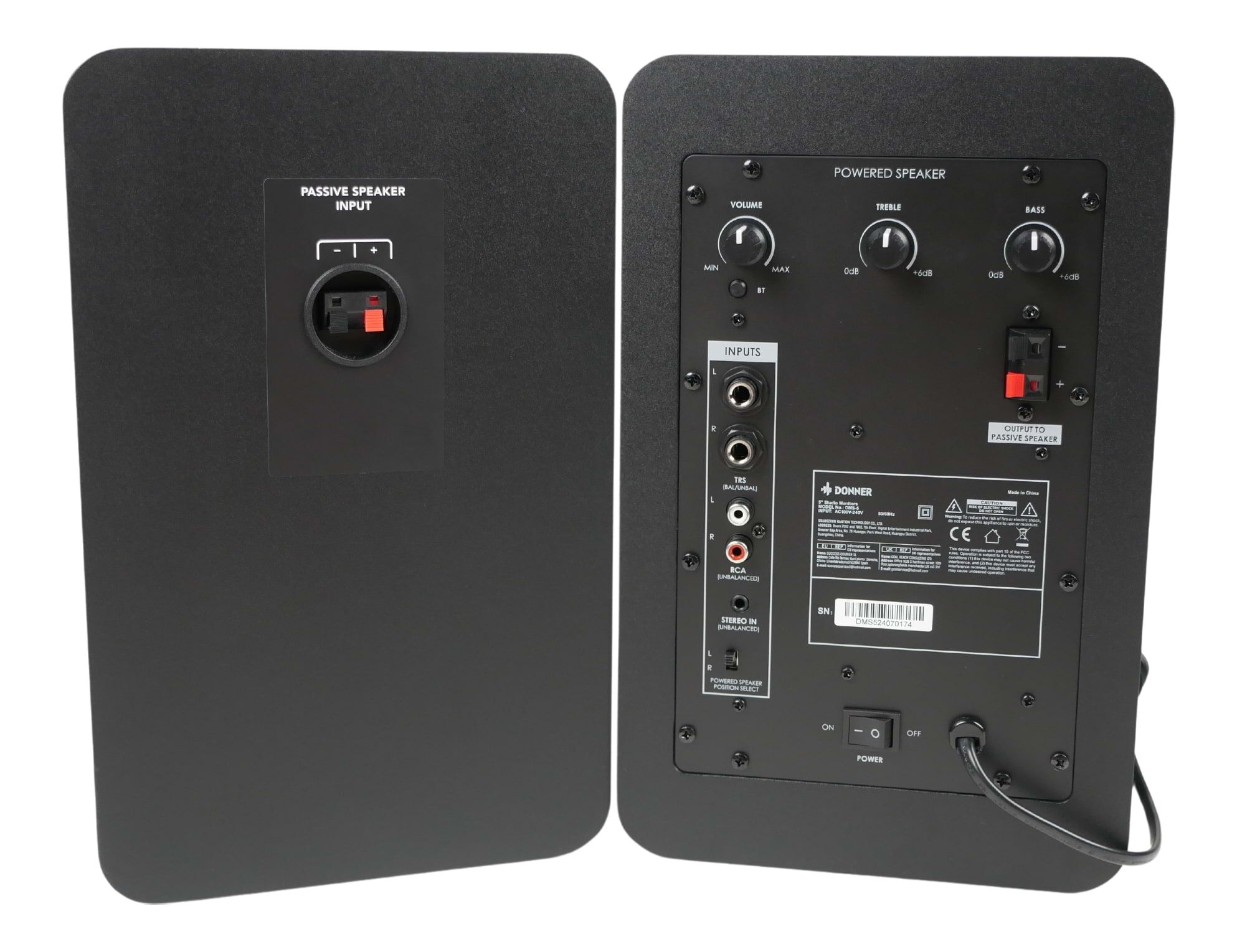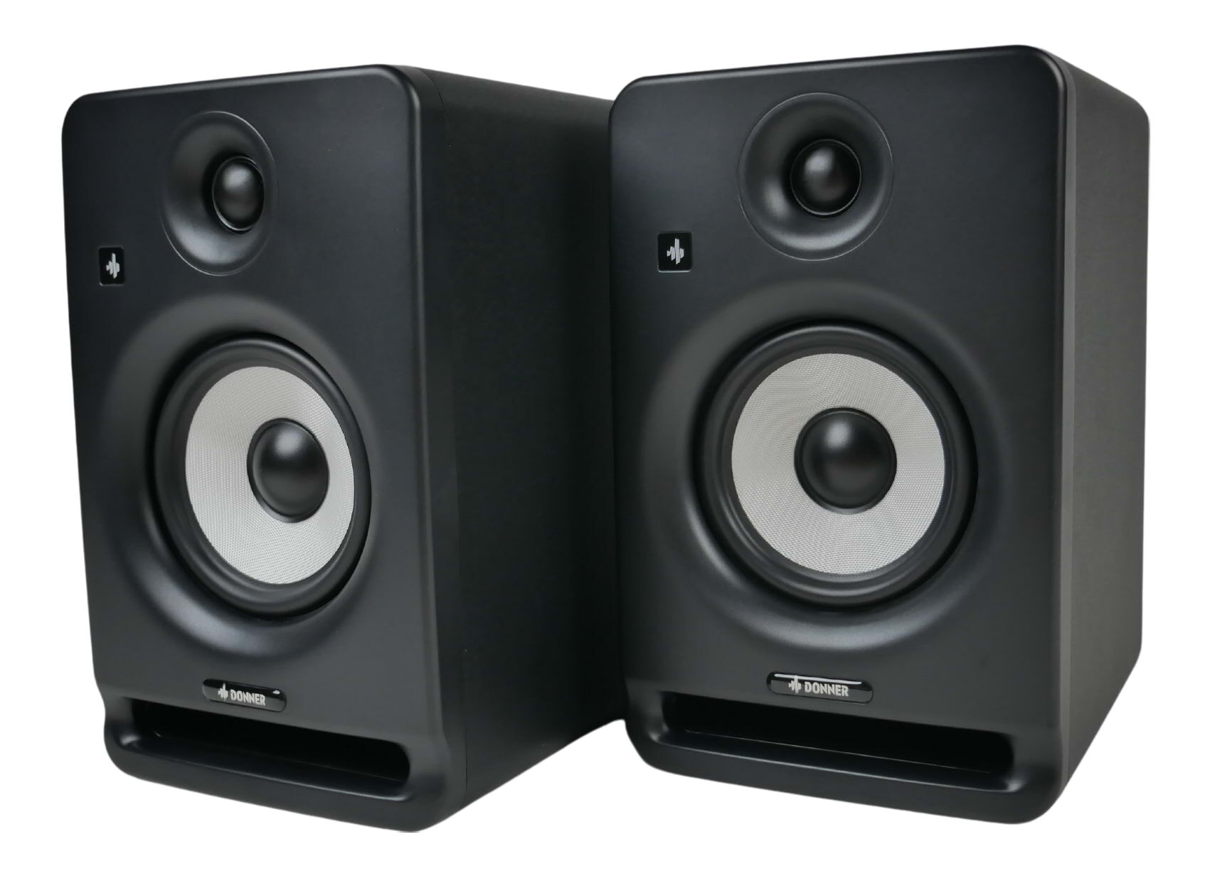 The Donner DMS-5 studio monitors are compact 5" active speakers delivering clear, accurate sound with 100W peak power, bi-amped design, and versatile inputs - ideal for home studios, music production, and everyday listening setups. 55 Hz - 20 kHz.