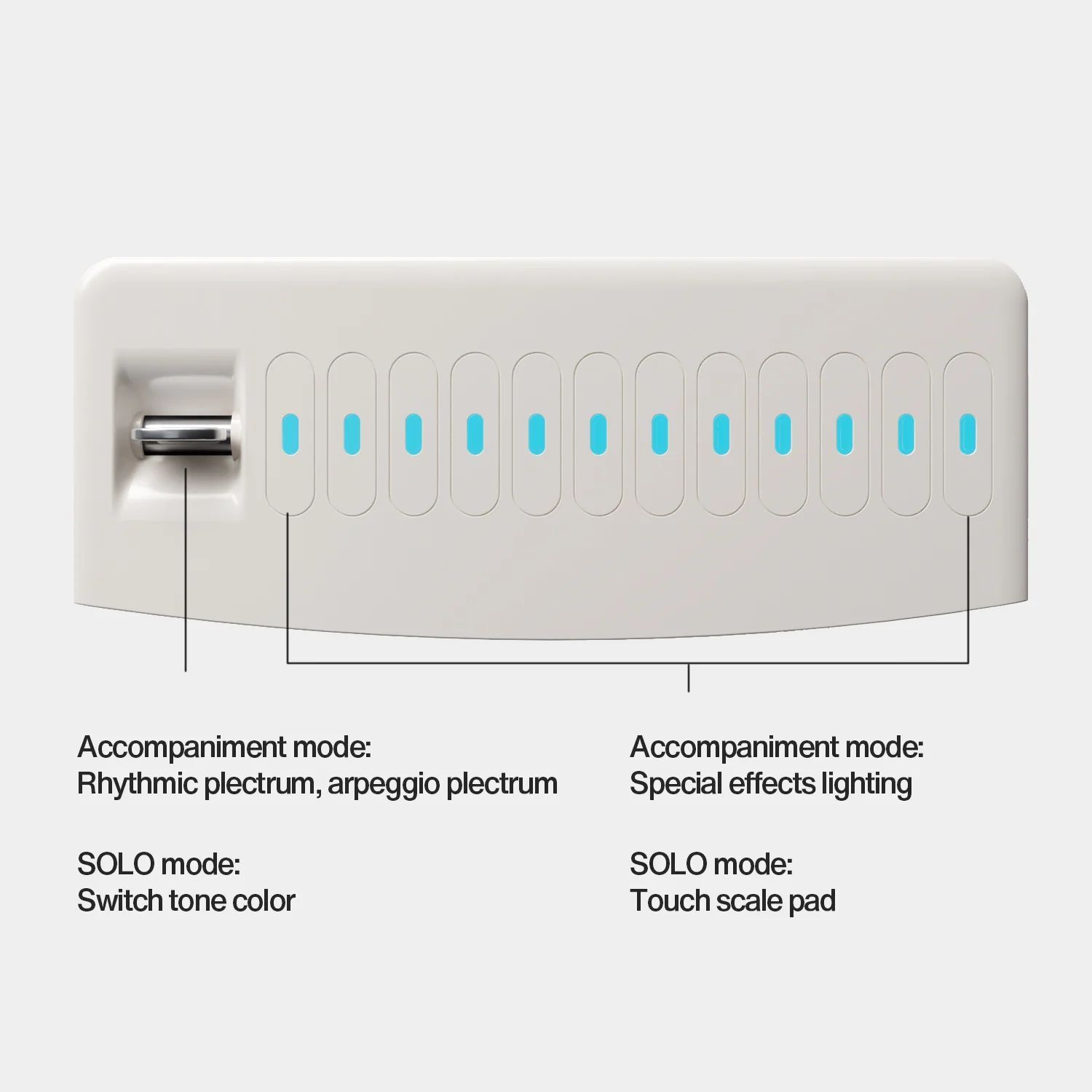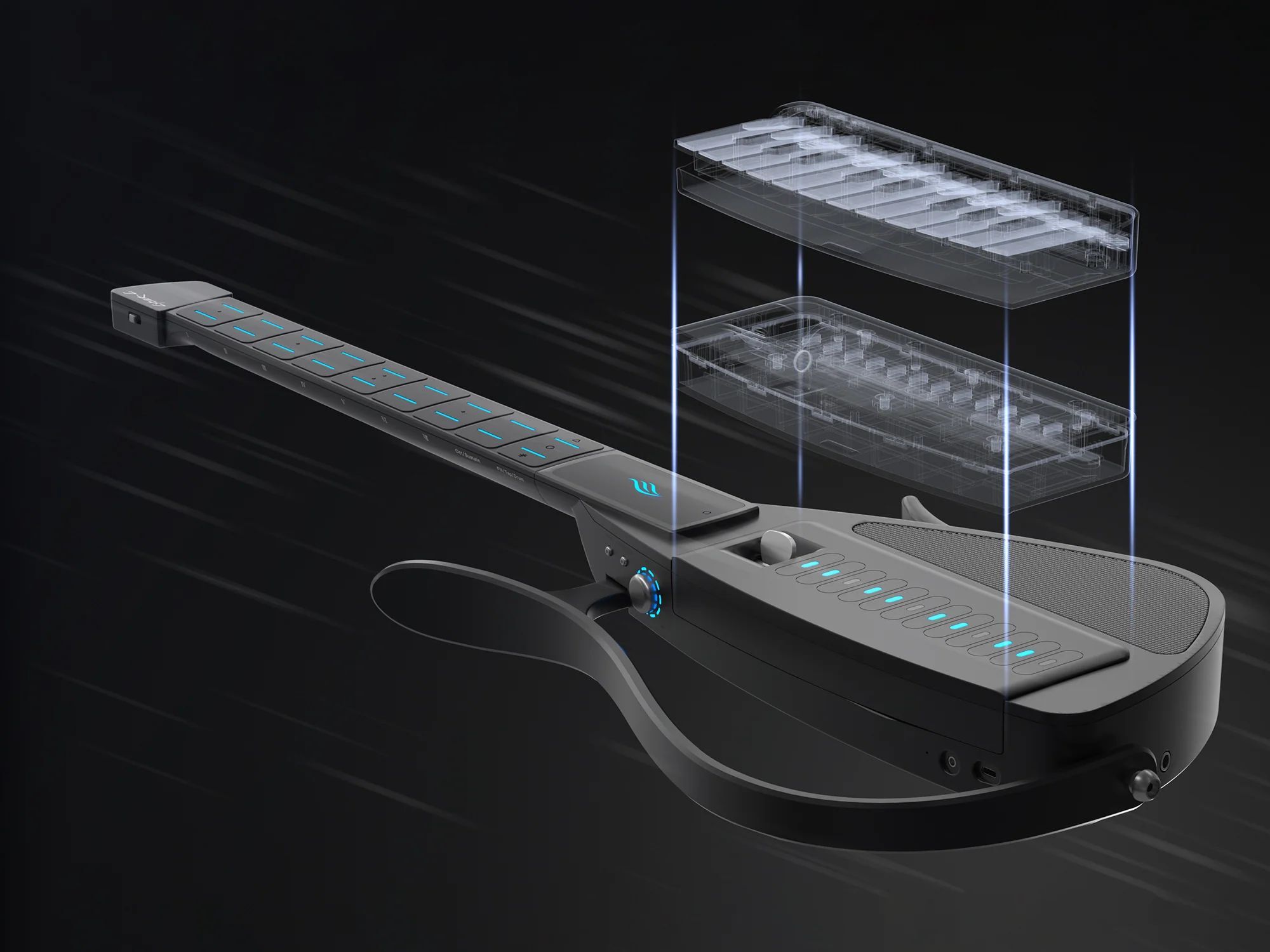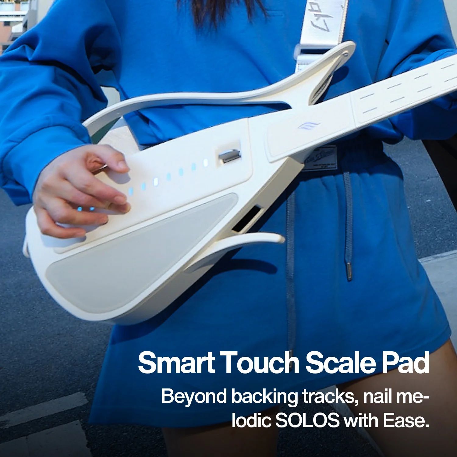 Traditional instruments take months to master, but the Cyber-G invites instant creativity. Use simple gestures to trigger rich accompaniments: press a chord pad on the neck, and tap the Pick Module to generate harmonised rhythms. It’s a new musical interface — intuitive from day one.