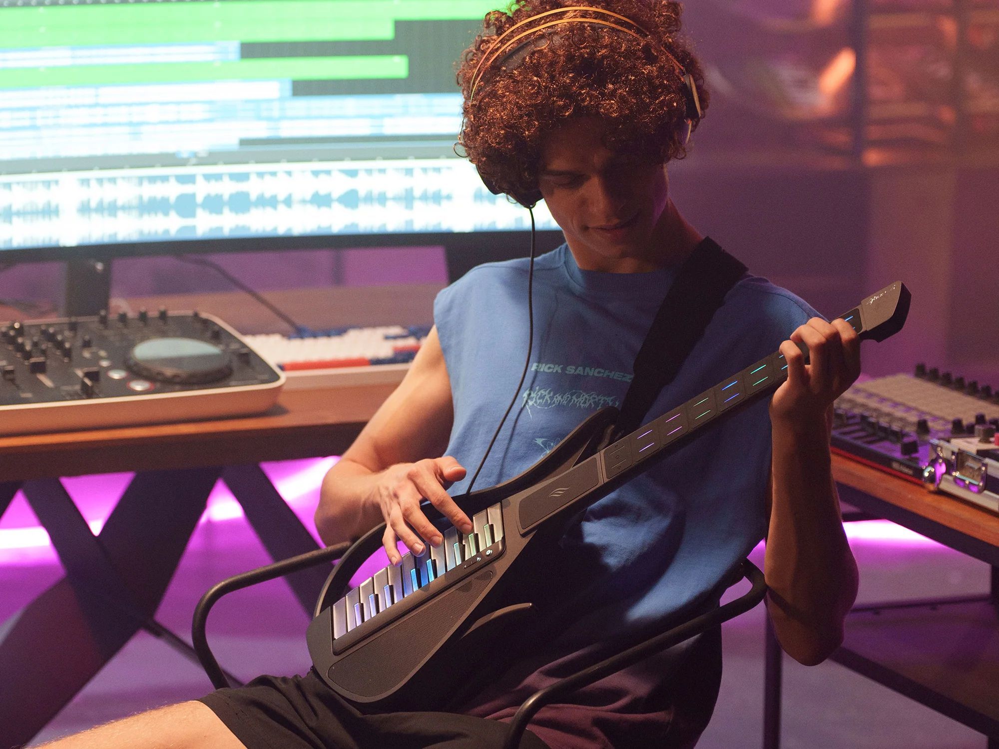 – Keyboard Module (sold separately): Velocity-sensitive keys for playing melodies, leads, or rhythmic phrases — styled like a futuristic keytar. Use Solo Mode to layer chords with your left hand and solos with your right, all within a single instrument.