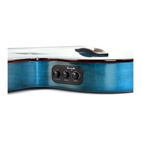 Here is a very special ukulele from Enya. The E6 Tenor Ukulele features all solid flame maple, the head, neck and centre back are one-piece maple, hand-made pearl inlay on the ebony fingerboard, die-cast tuners, and the AcousticPlus pickup. Beautiful blue gloss finish. Gig bag included.