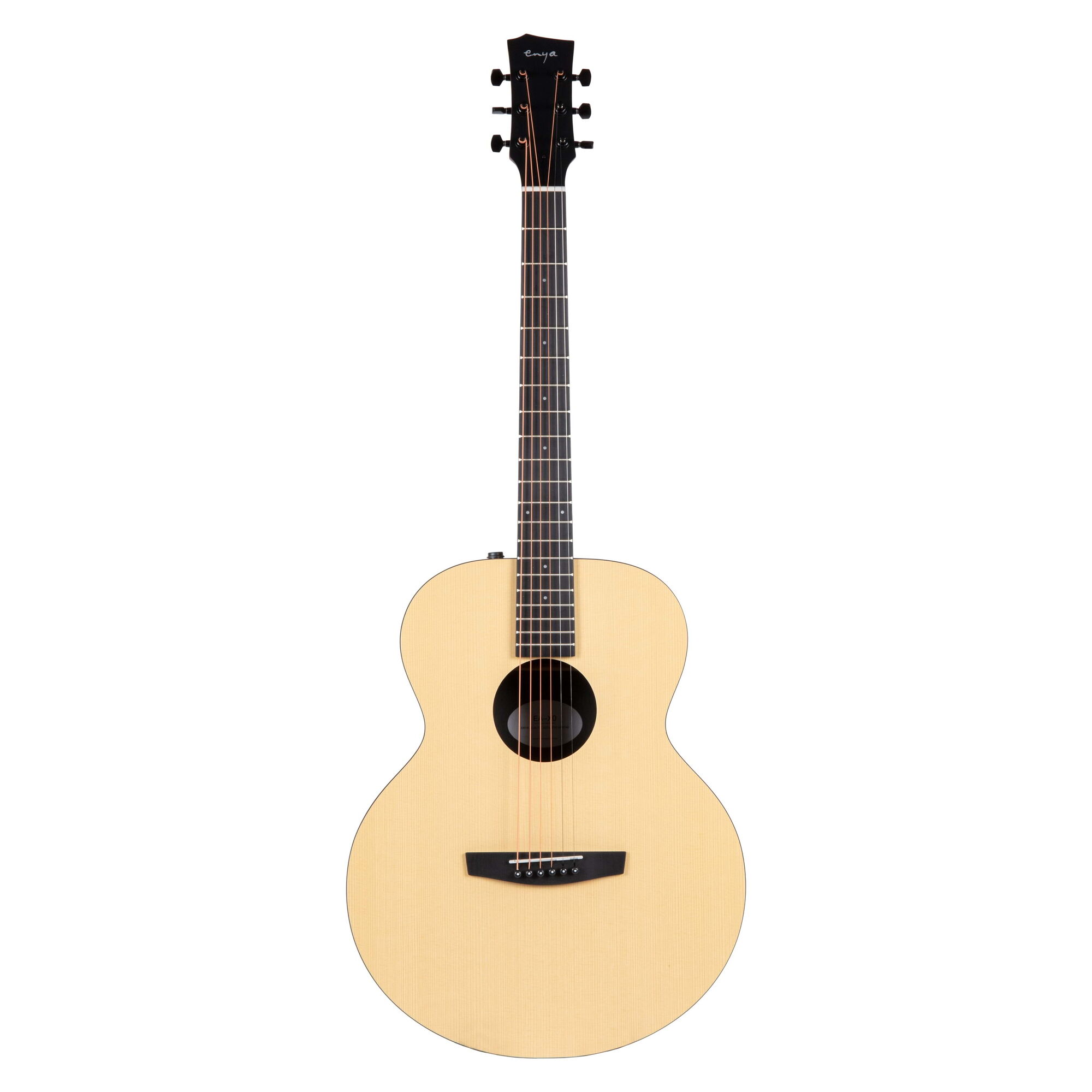 The Enya EM-X0 36" Acoustic-Electric Guitar in Natural finish brings full-featured performance to a compact, travel-friendly format. Featuring an AJ (Advanced Jumbo) body shape in a scaled-down design and equipped with the AcousticPlus™ pickup system, this model is perfect for players seeking portability, traditional aesthetics, and reliable amplified tone. Gig bag included.