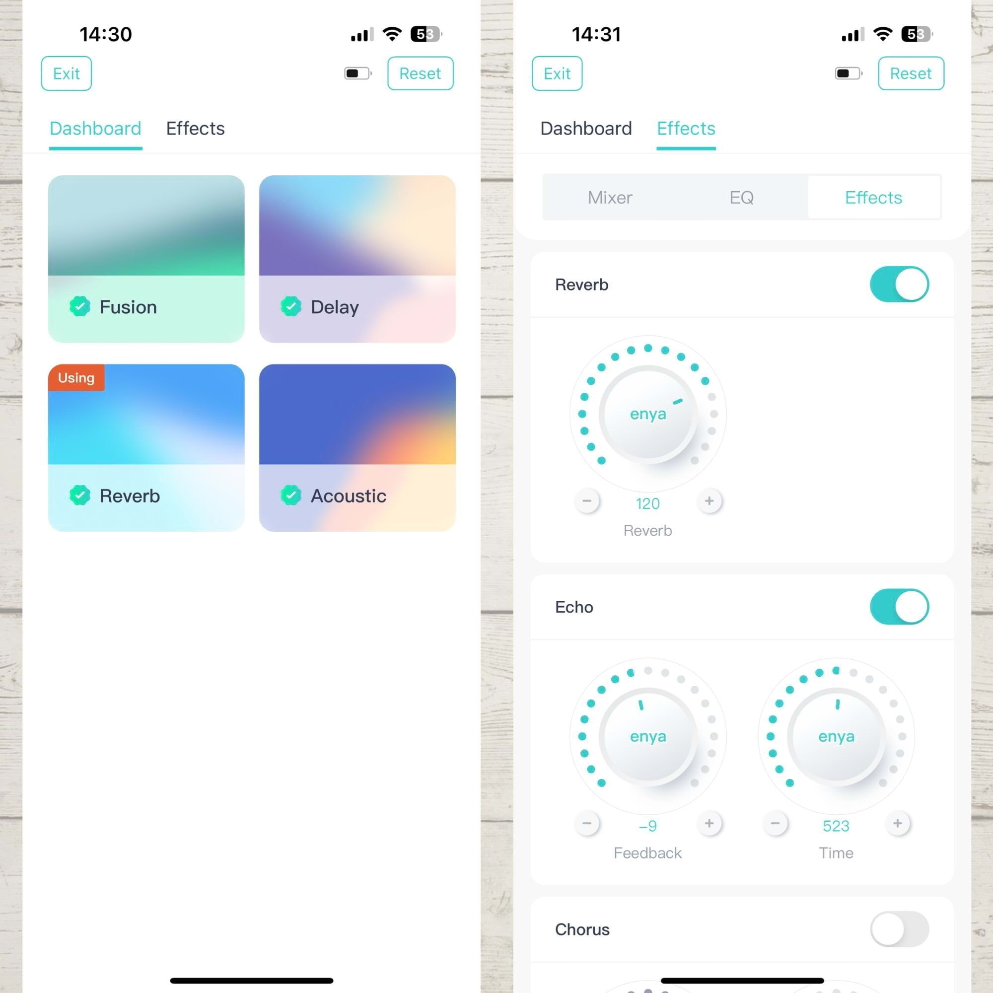 When connected to an amp or PA, it functions as a full-featured acoustic-electric system, complete with a 5-band EQ for shaping your sound. The SP1 system also connects to the Enya App, where you can fine-tune effect parameters, adjust EQ settings for both the actuator and line output, and fully customise your tone.
