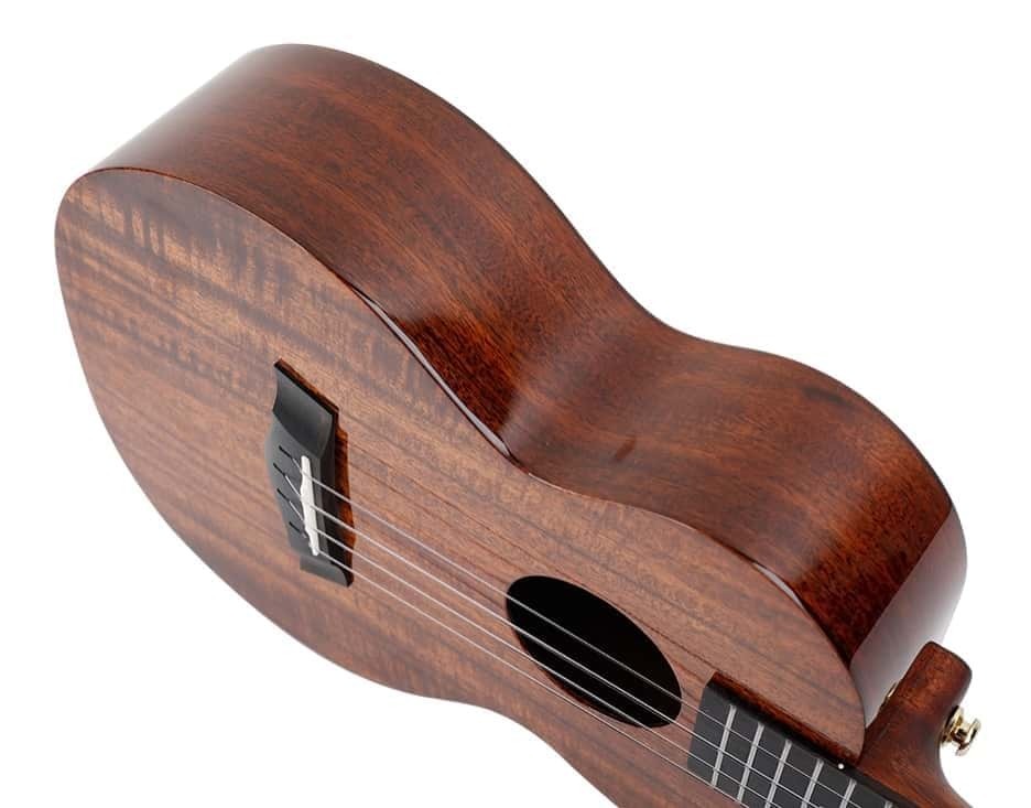 Concert - The Enya K1 series of ukuleles utilise a quality Acacia wood for the top, back and sides, producing a deep woody tone. Beautiful wood grain with a high-gloss finish, mahogany neck, gold agate tuners, truss rod. Complete with premium gig bag.