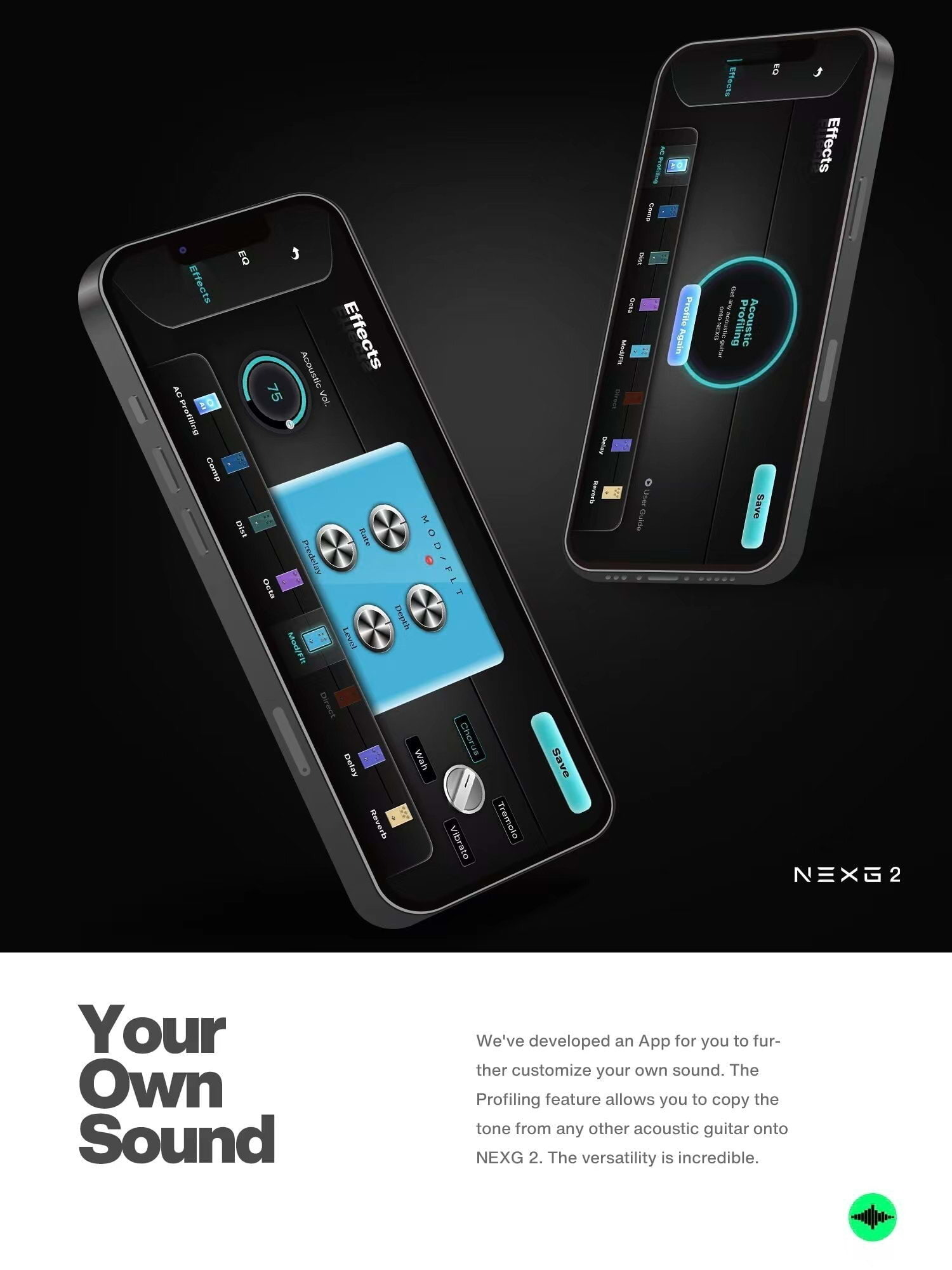 Experience authentic acoustic guitar tones with the NEXG 2's acoustic profiling technology, accurately capturing the unique characteristics of your acoustic guitar or any other, and provide realistic simulations.