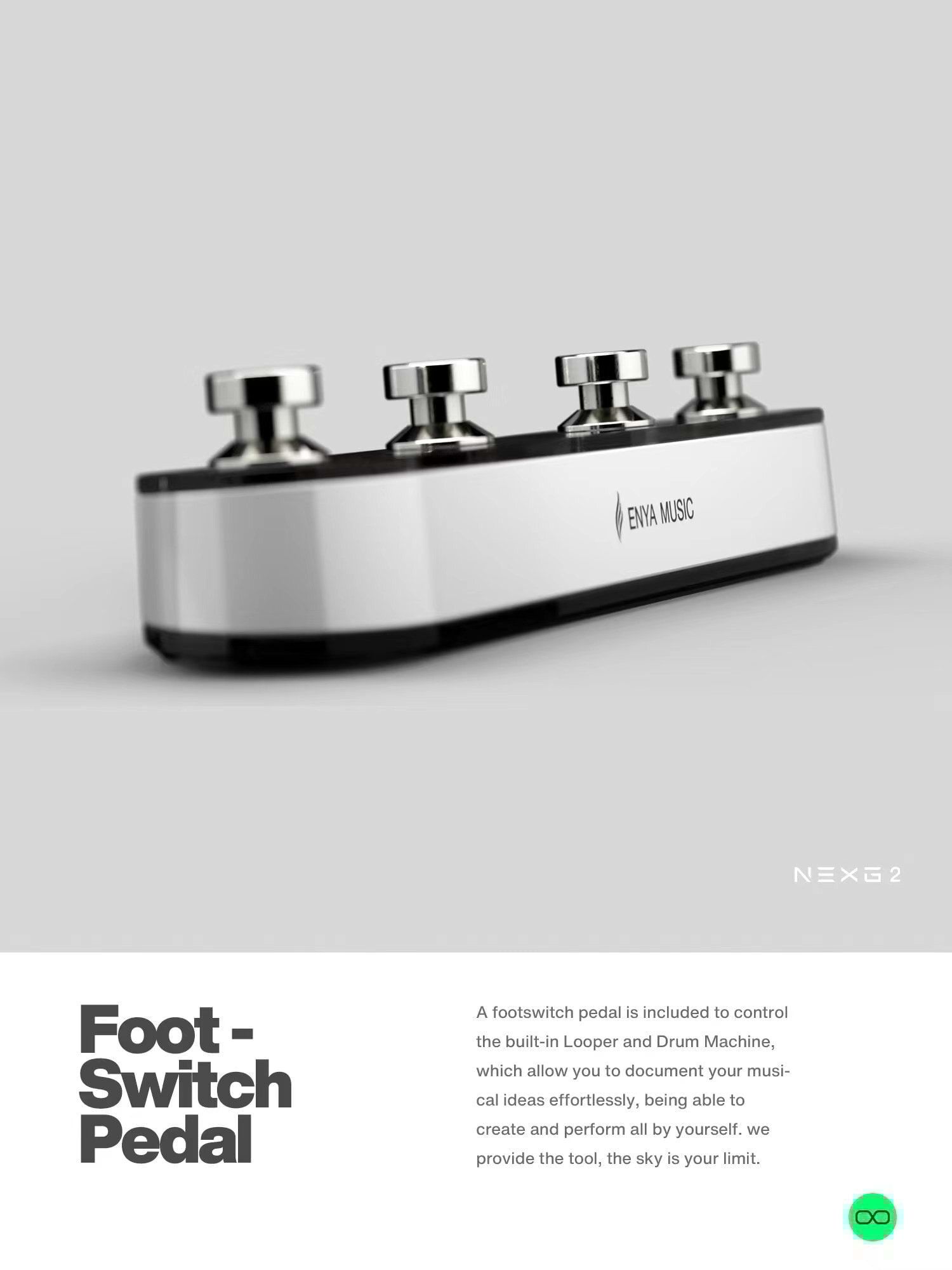 Capture and layer your musical ideas effortlessly with the onboard looper and wireless pedal, say goodbye to timing challenges and unlock your full musical potential with NEXG2. Refine loops with precise timing and automatic correction. The wireless footswitch allows you to freely control tone switching, loops, drum machines and the tuner.