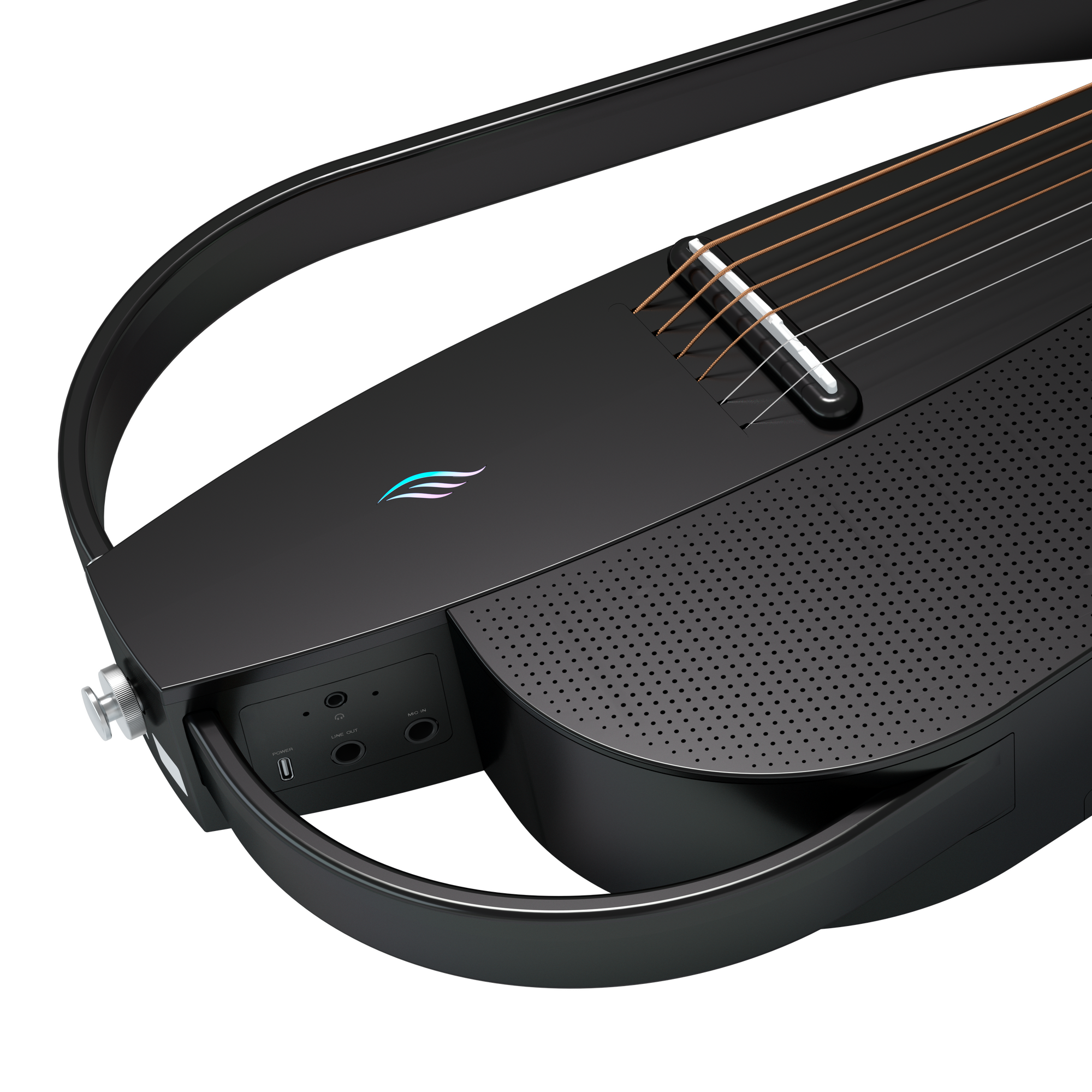 Use a 3.5mm TRS output jack to connect your headphones for silent practice, or the 1/4" jack output to plug into an amplifier for live performances or practice sessions with external sound. The USB Type-C port with OTG (On-The-Go) functionality allows the guitar to act as an audio interface, enabling direct connection to a computer or compatible device for recording and playback. After connecting headphones, the guitar automatically mutes any external audio output, allowing for quiet jamming without disturbing others.