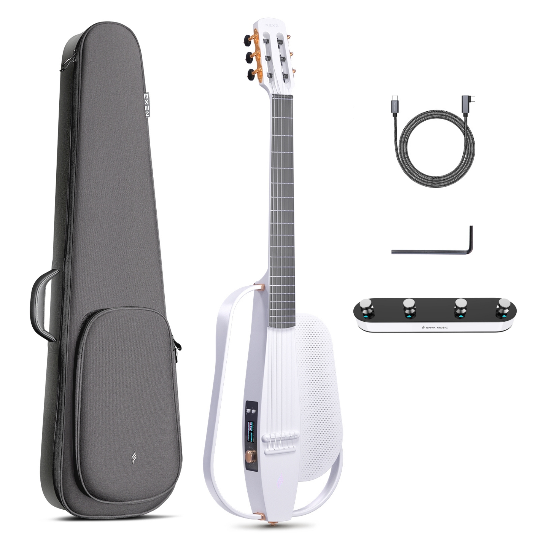White - The Enya NEXG 2N combines a traditional nylon string guitar with advanced audio technology, offering a range of built-in effects, looper, drum machine, intuitive interface, app integration, and acoustic profiling to expand your creative potential.