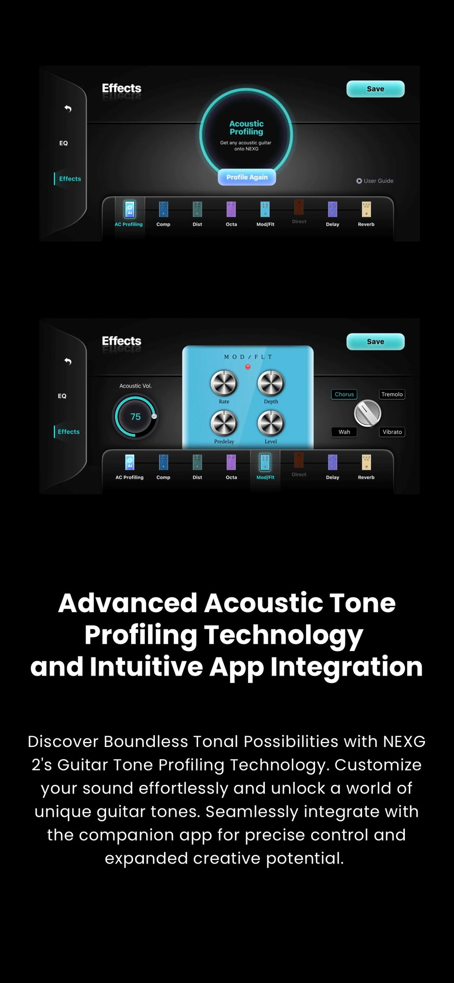 Enhance your NEXG 2 experience with the intuitive companion app, providing additional effects and sound customisation.