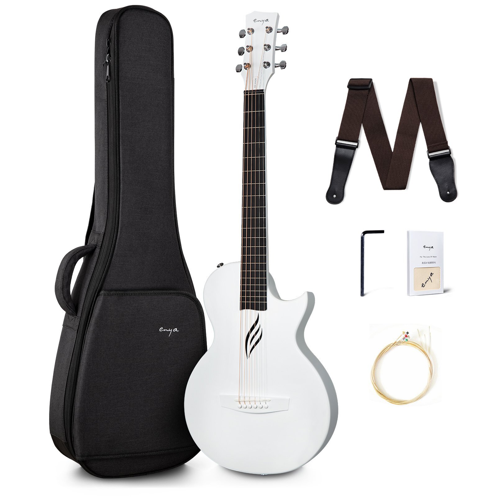 Enya's Nova Go guitar is the world's premier travel-size carbon fibre acoustic guitar. Lightweight and heat/water-resistant, it offers superior resonance and a remarkable bright acoustic tone. Boasting a full carbon fibre weather-proof body, round-end frets, arched back, radius fretboard, round-edged body, and zero fret design, the Nova Go packs an impressive array of features. As a continuation of Enya's carbon fibre line, it is a well-developed instrument that provides outstanding feel and sound in the player's hands.