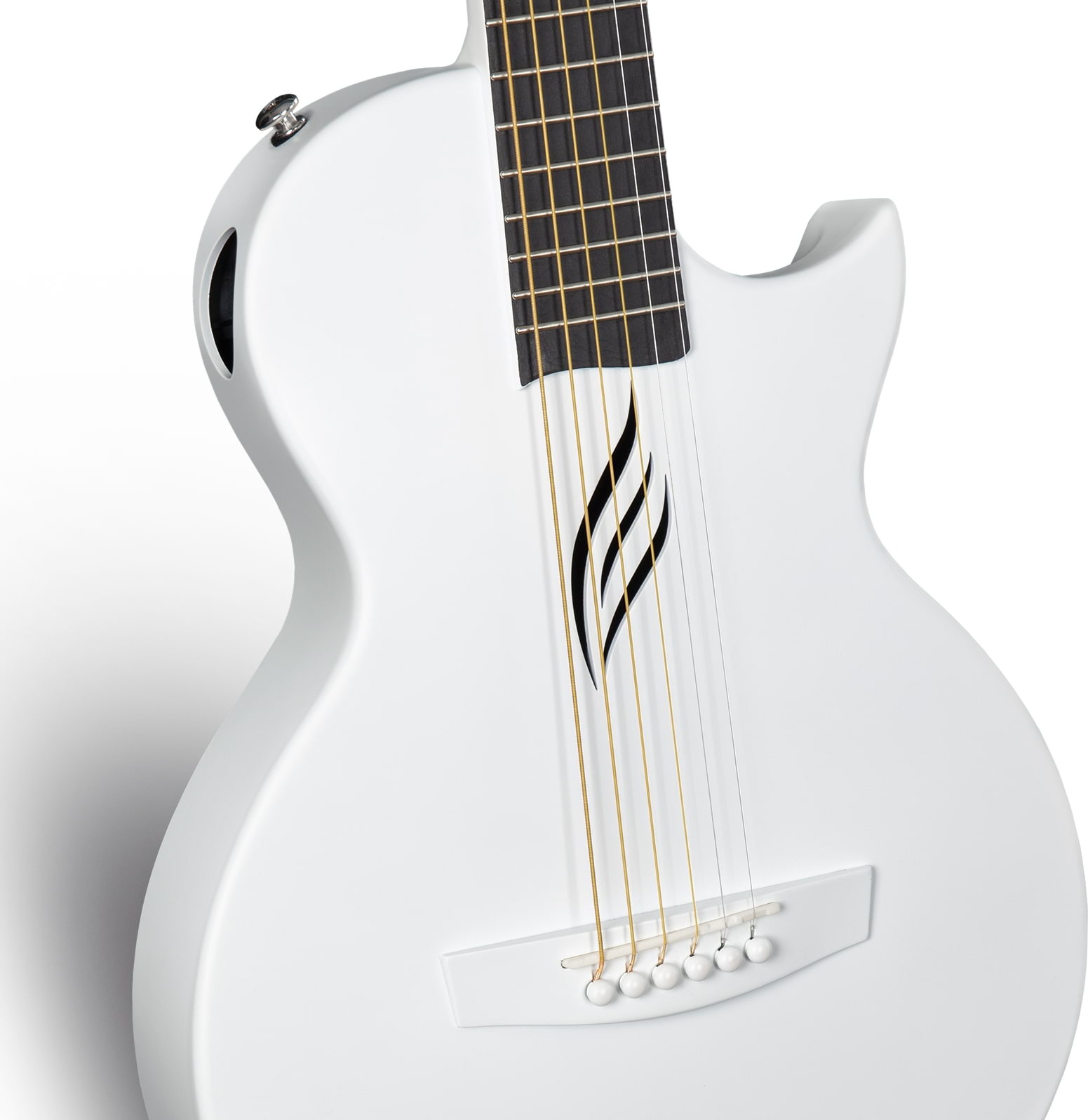 Acoustic Version - White - World’s premier travel-size carbon fibre acoustic guitar. Lightweight, heat/water-resistant, superior resonance and remarkable bright acoustic tone. Full carbon fibre round-edged body, arched back and zero fret design.