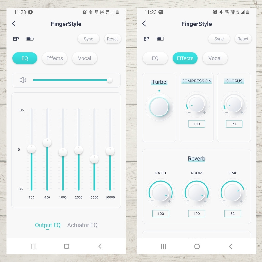 - Easily switch between 4 effects with one click (Clean: Acoustic-Chorus & Effects: Reverb/Delay/Fusion)