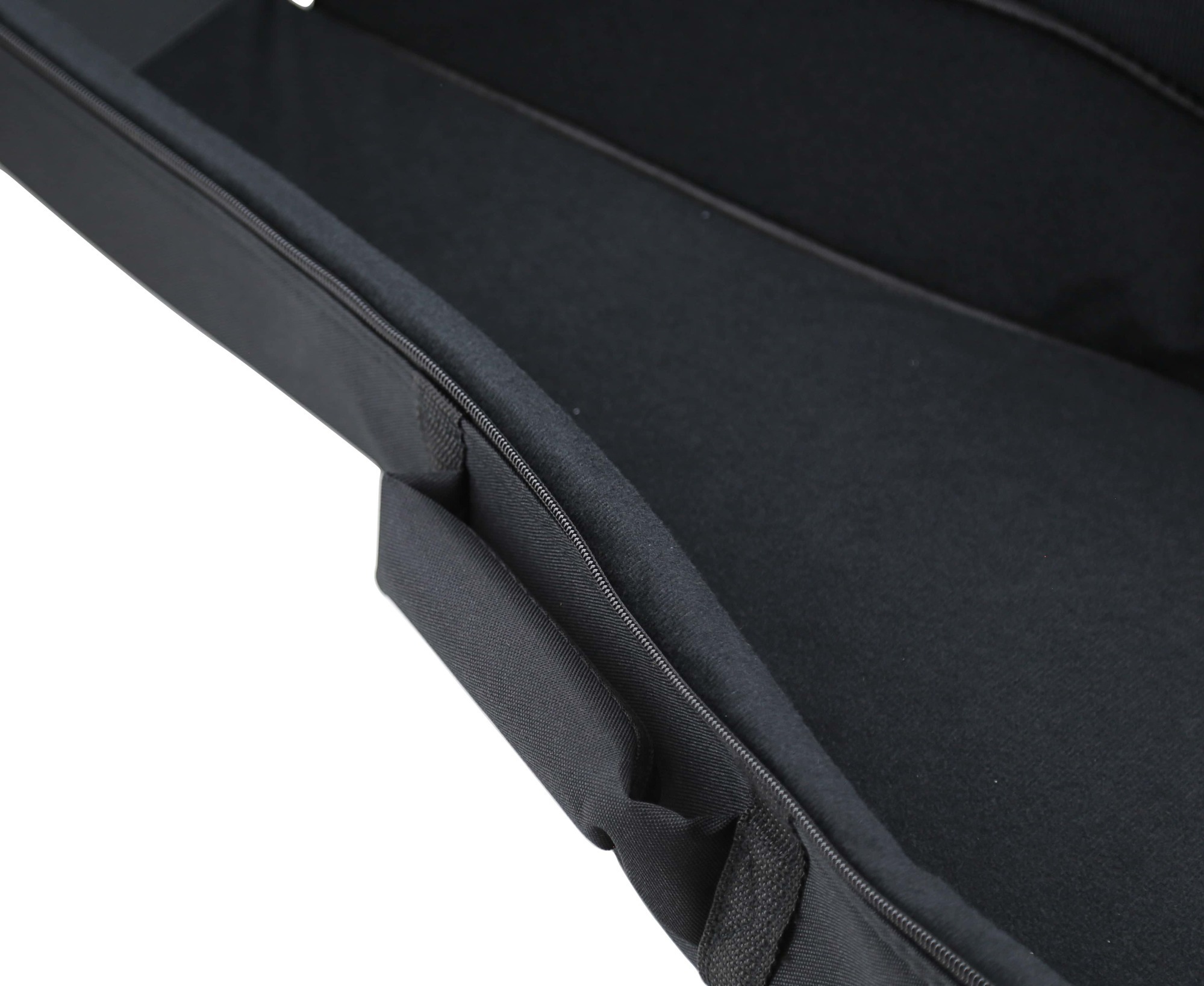 Enya's sturdy, lightweight protective gig bags for acoustic guitars have been designed and manufactured for ultimate protection. These bags are presented with options for dreadnoughts, 41" and 36" AJ body / mini jumbo / traveller guitars. Well padded, these gig bags have heavy duty style zippers which move smoothly. The backstraps are padded as well for further comfort when transporting your instrument. The outer accessory bag is quite spacious, allowing for large music books, straps and other gear to be stored safely. The two rubber feet located on the bottom are excellent inprotecting your instrument and gig bag.