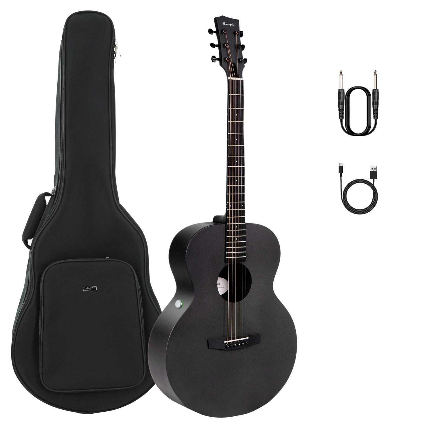 The Enya EM-X0 36" is a compact travel-size acoustic-electric guitar that doesn’t compromise on tone or features. Designed with the same AJ (Advanced Jumbo) body shape in a scaled-down form, it’s lightweight and highly portable—ideal for young players, travelers, or those seeking a smaller instrument. Finished in a striking matte black and equipped with Enya’s AcousticPlus™ pickup system, the EM-X0 delivers full, vibrant sound and built-in effects in a compact and durable package.