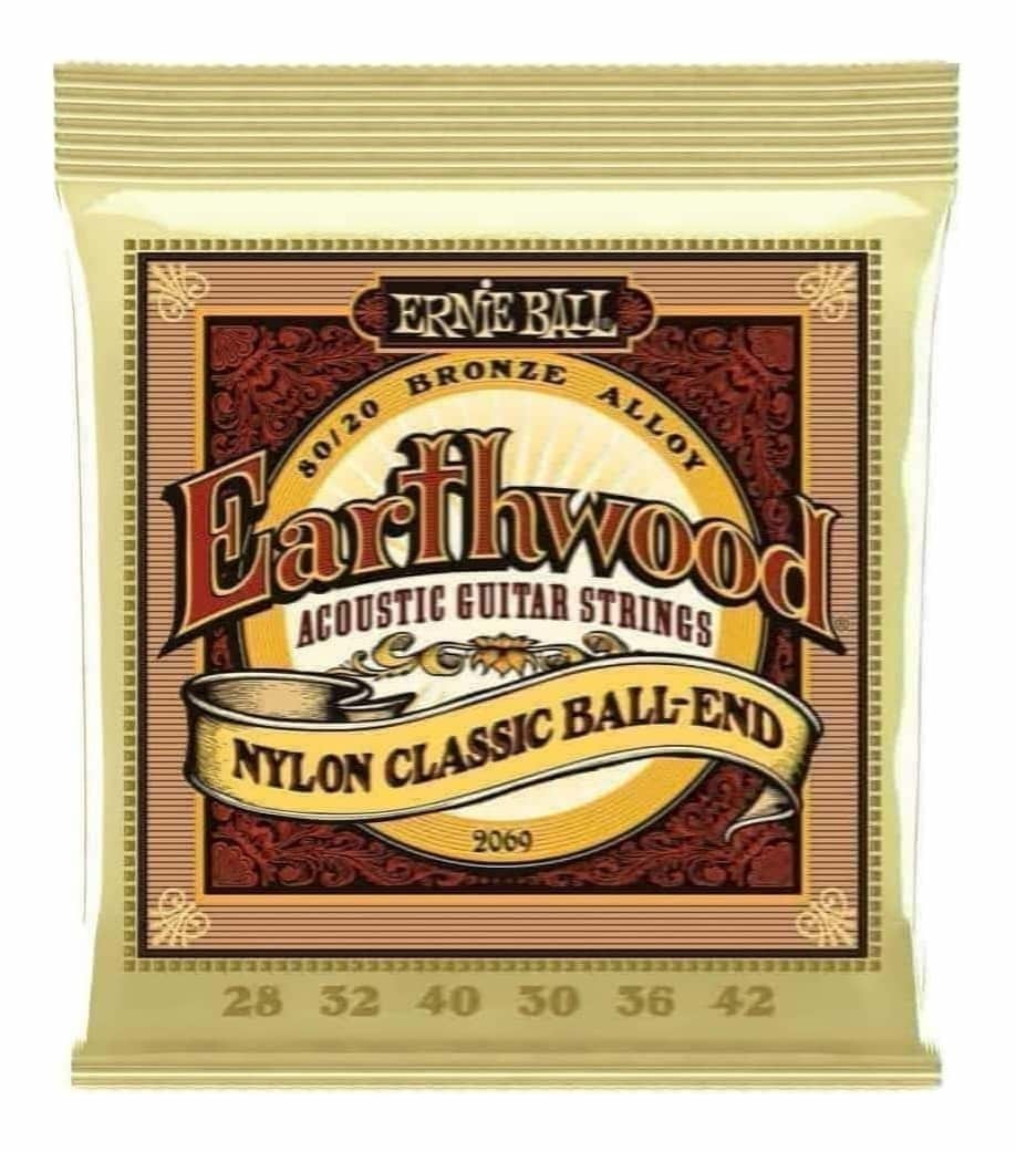 Clear & Gold Ball End, 80/20 Bronze,28-42 Gauge,earthwood-folk-nylon-clear-gold-ball-end-80-20-bronze-acoustic-guitar-strings,Plain strings are made of a solid nylon clear filament. Nylon produces rich pure treble tones with percussive attack. Wound strings are made of 80/20 bronze wrapped around a multifiliment nylon core. Ball end classical strings for faster installation.