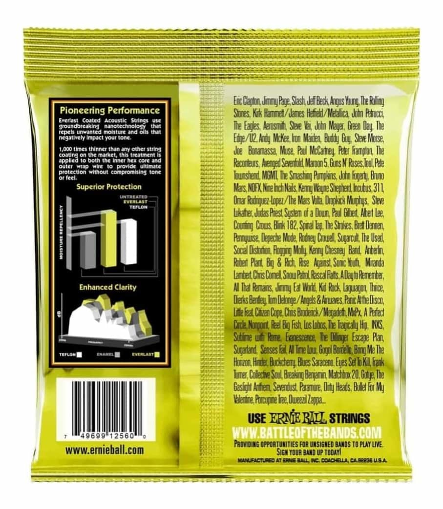 Everlast Coated acoustic strings use groundbreaking nanotechnology that repels unwanted moisture and oils that negatively impact your tone.