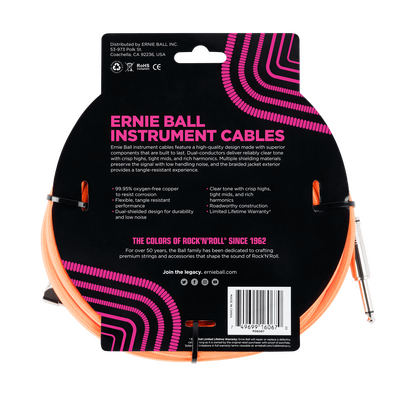 Neon Orange - 25ft / 7.62m Braided Jacket EB-60 Series Ernie Ball Instrument Cables. With multiple shielding, and dual-conductors, you'll experience clearer tone, less noise, and superior durability. Clean signal that's both quiet and accurate full range