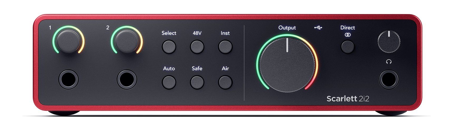 The new Gen4 models provide a fantastic level of feature sets. WIth Clip Safe, it automatically adjusts the gain if you’re at risk of clipping, just like having a pro engineer watching your session, as it checkas your levels up to 96,000 times a second. Scarlett’s Dynamic Gain Halos let you easily monitor your input and output signals directly from your hardware. Monitoring is top class, with the powerful, custom-designed headphone amp with independent level control, for loud, clear, and accurate playback and monitoring.