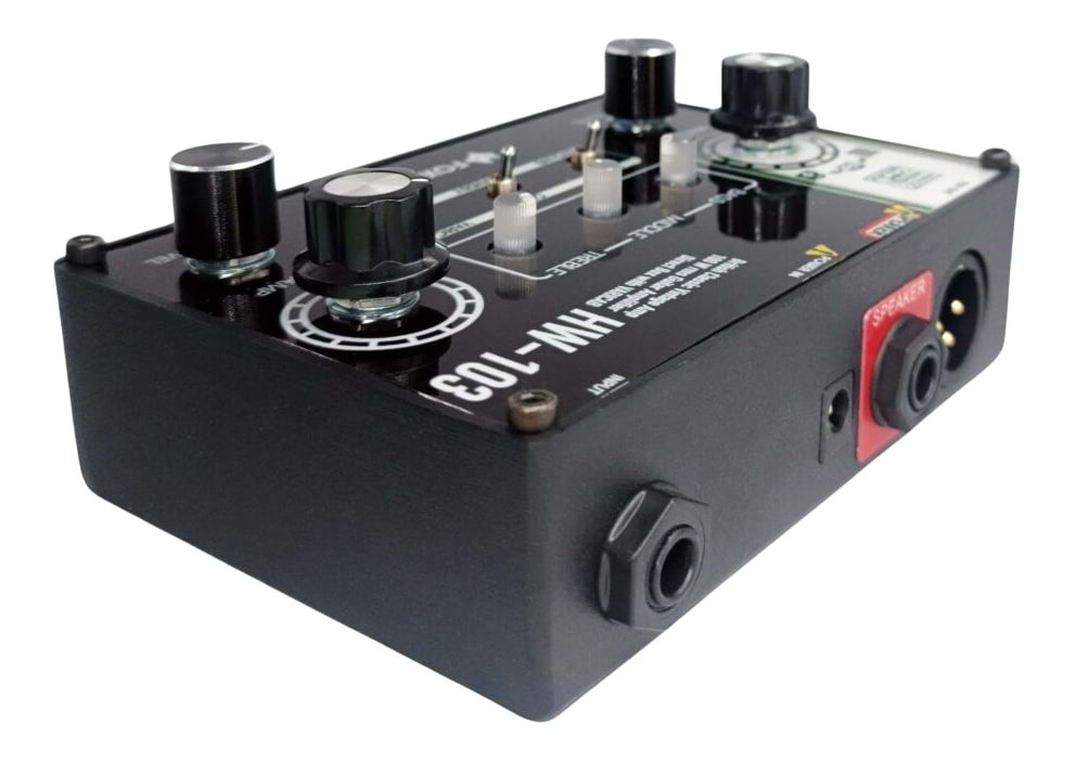 The HW-103 is clearly inspired to 70’s era of HIWATT Amplifiers, and exactly reproduces that kind of tone made famous by David Gilmour. Big Headroom, punch, and that kind of “pedal platform” neutral clean tone, to be the best friend of any pedals and offers the best solution for rehearsals, gigs, home practice, studio applications, without compromises. The Analog Variable Cabinet Simulator is a 100% analog simulation of different EQ curves that speakers and microphones apply to your amplifier in real life, and with a simple and effective knob, makes you able to find your best sweet-spot to make the direct out sounds exactly like your real speaker behind your back. It is not just another post EQ control, it works on the feedback of certain frequencies, making the cab simulator so much powerful and versatile. As like his predecessor, awarded KOLT45, he HW-103, really offers the same experience of using an old tube hi watt head and takes pedals like any other. Just bring your HW-103 into your gig bag and connect it to any speaker, to any PA, simultaneously or even just the XLR out with any cab connected. No regrets, No tone compromises.
