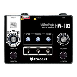 The Foxgear HW-103 is a 100W British Classic Vintage Guitar Amplifier in a Pedal format, inspired by the iconic British HIWATT amplifiers of the 70's era. Can be used as a guitar amp, Direct Box, or both. It has Cab sims, deliver up to 100W RMS into 4ohm.