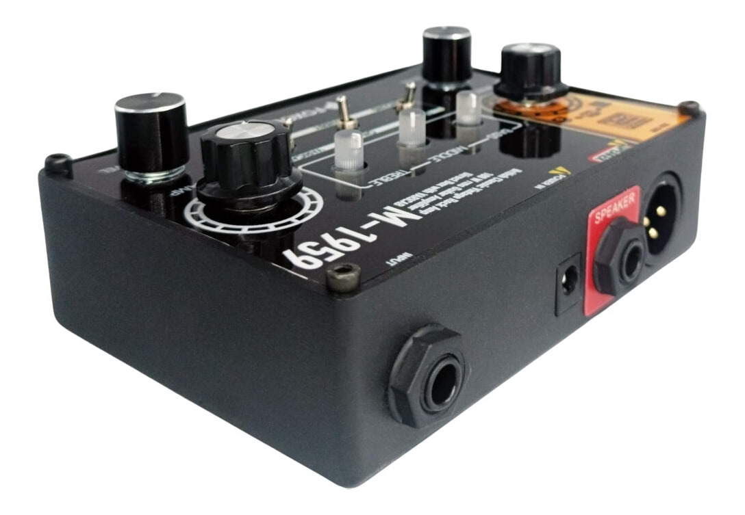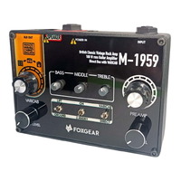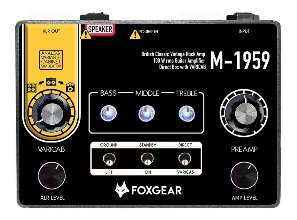 The Foxgear M-1959 100W British Classic Vintage Guitar Amplifier Pedal faithfully reproduces the exact tone and behavior of the 60' era Marshall Plexi. Big Headroom, punch, and slight crunch when pushed, and with an analog variable cabinet simulator.