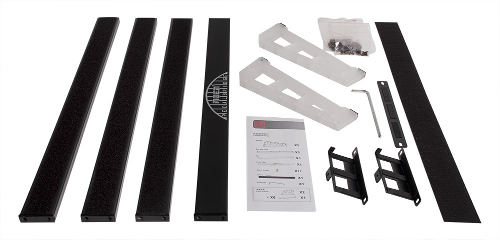 Comes with everything you need to set up a great looking and impressive pedal board. Once it's assembled, you can use the supplied Velcro tape cut into strips of your choosing to attach to the bottom of your pedals. The rungs are completely lined with Velcro, allowing for maximum customisation of your pedal positioning.