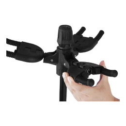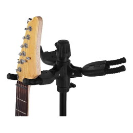 Ideal for securely holding up to three instruments at the same time, the Guitto GGS06T Triple Guitar Floor Stand features hanger mechanisms that self-lock by gravity, great for different shapes of headstocks. Reinforced aluminium tube, sturdy tripod base.