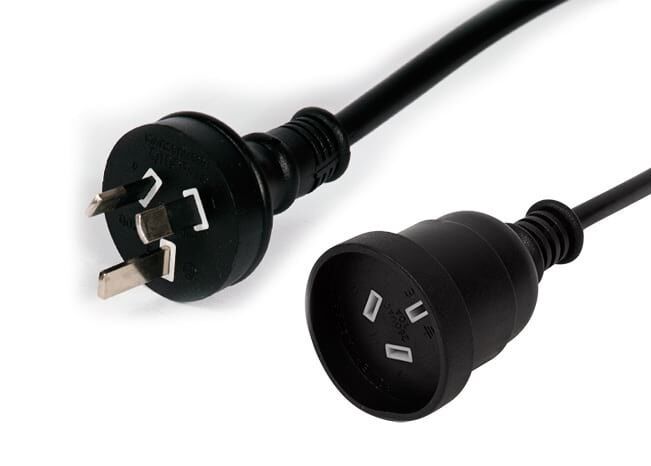General purpose 10 Amp power extension cord that is terminated with 3 pin Australian mains plugs with insulated pins. Suitable for commercial or home use. Coloured rings are included and unique to each length, and see-through sleeves to add labels.