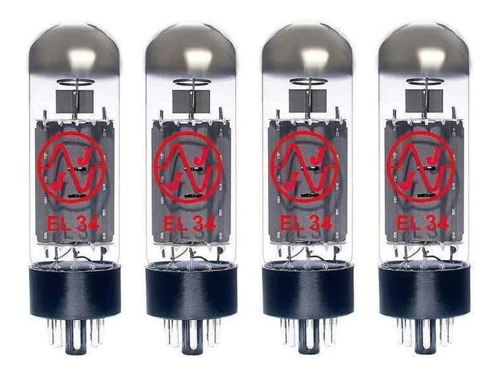 The JJ Electronic EL34 is a matched quad of octal power tubes with a maximum plate power of 25W. Very robust and reliable due to its internal construction. Provide tight lows, a rich and dynamic mid range and clear highs. Great for guitar amps and studio.