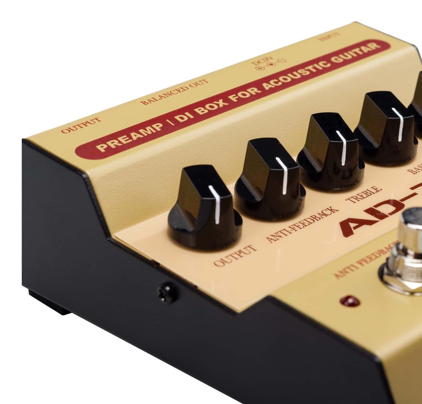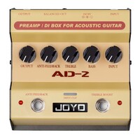 The JOYO AD-2 is designed for acoustic guitars, and can be used with other acoustic stringed instruments that use a pickup. Featuring dual-band EQ's anti-feedback switch, treble boost, and a clipping LED.  Perfect for live and recording.