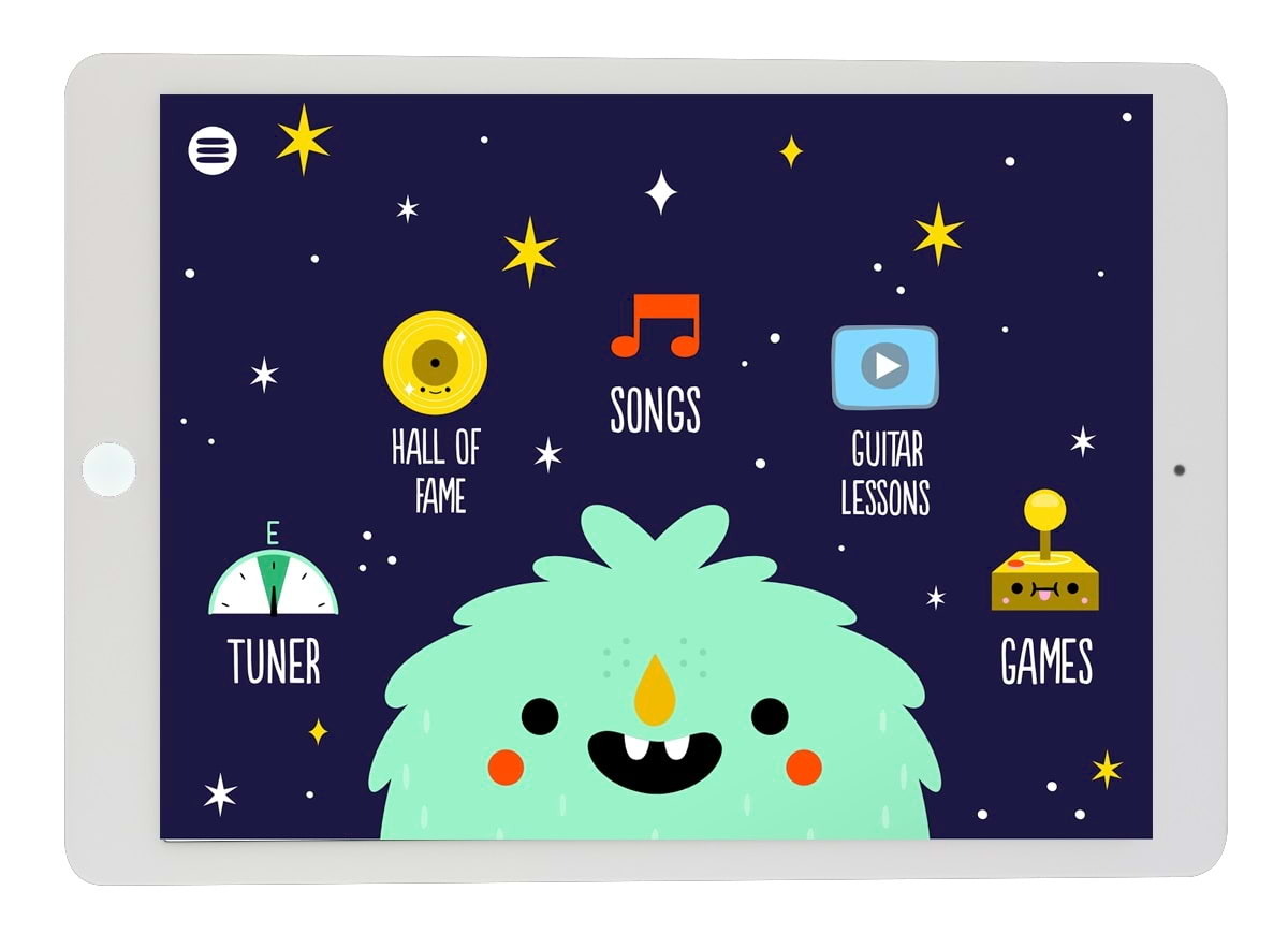 The free Loog Guitar app has video lessons, a tuner, and a digital songbook so you can learn by playing real songs (Beatles, Stones, Taylor Swift and more). It even has an "augmented reality" feature that allows you to learn guitar using the selfie camera! The app is available free on Apple and Google play stores.