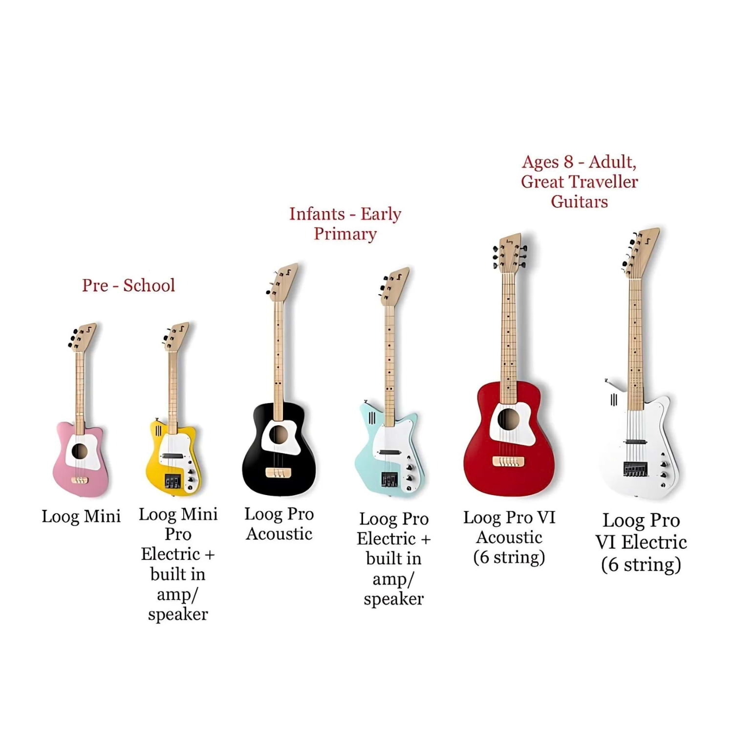 - Electric guitar strings and standard guitar tuning: Learn on a Loog, play any guitar