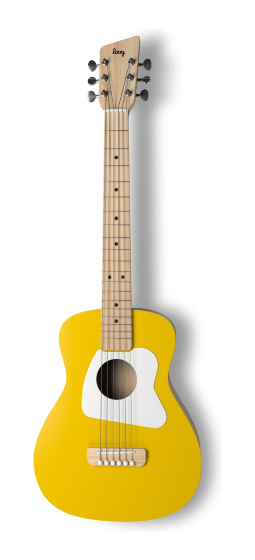 Yellow - The Loog Pro VI Acoustic makes it easy for beginners to finally learn to play guitar. A light and compact short-scale guitar, bundled with flashcards, an app, and free video lessons. Steel strings, standard guitar tuning, available in 6 colours.