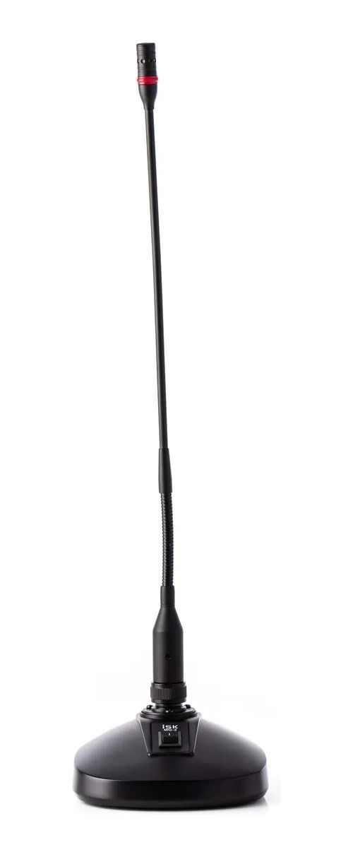 The MG-2 conference microphone is a uni-directional condenser mic with a long pick-up range, ideal for meetings, conferences and public speaking. Featuring an LED light near the mic capsule, a sturdy zinc base with an on/off switch and frequency 50Hz-16kHz. Also features a flexible goose neck and a standard balanced XLR connection. Phantom power (48V) is required for operation (supplied through most mixing consoles).