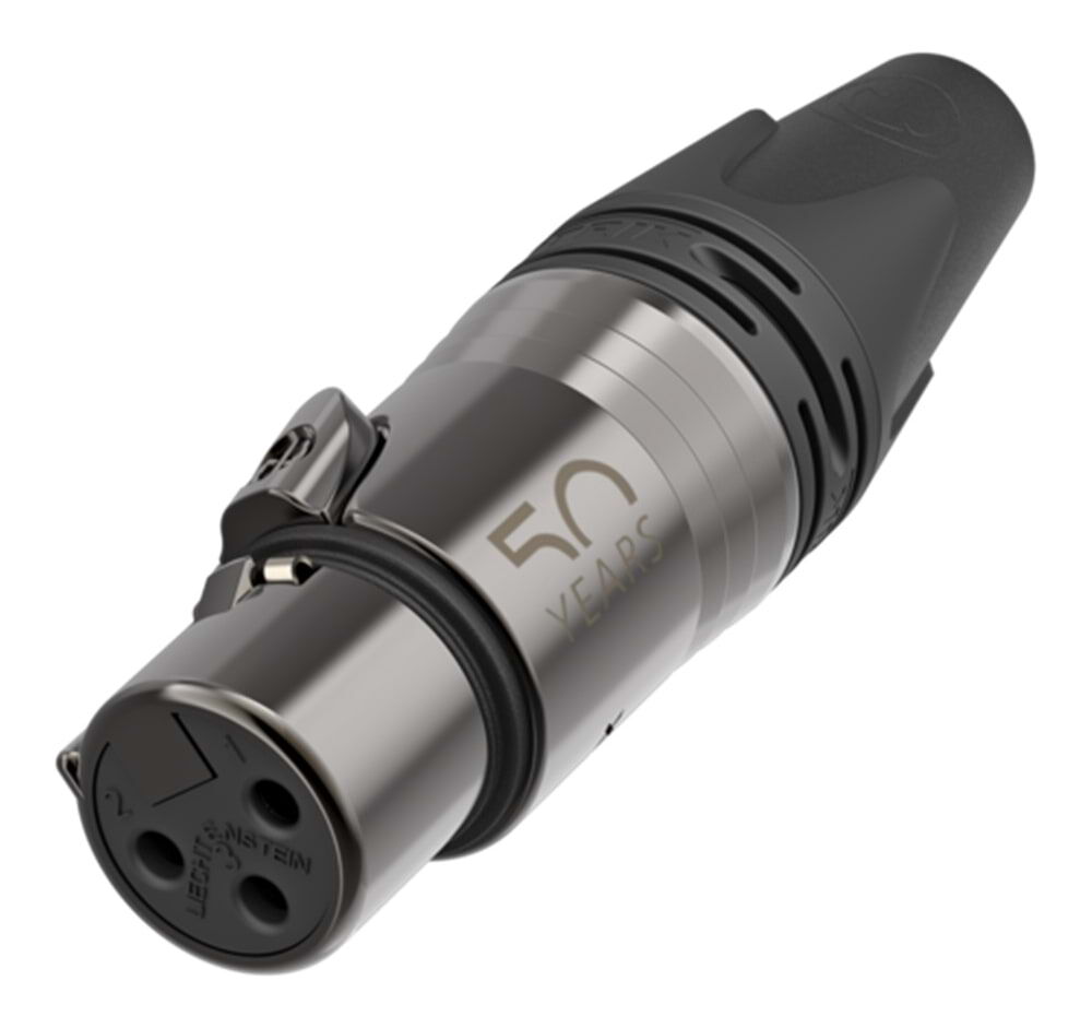 Crafted with a unique dark grey conductive metal plating and a 50-year anniversary logo laser-engraved, these connectors combine exceptional durability with elegant design. Gold-plated contacts ensure superior performance and reliability. The female XLR features a matching plated push button for seamless design integration.