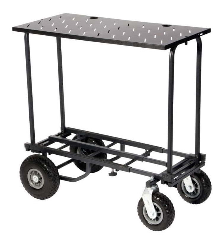 Extend the versatility of a utility cart with the UCA1500 Utility Cart Tray. This heavy-duty yet lightweight platform mounts to the handles of the UTC2200 & UTC5500 utility carts to create a workstation, table, or shelf. For use with instruments and electronics, the tray features slots and holes for routing cables and anchoring cable ties to maintain an organised setup. To adapt to a wide range of applications, the tray can mount to the top of the cart handles or at multiple heights between the handles. It can even be used as an additional tier for carting equipment. It is easy to convert a simple utility cart into a functional workstation - perfect for DJs, AV techs, live sound engineers, educators, and gigging musicians.